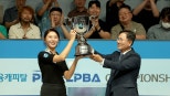 ▲우승컵을들어올리는김가영 '당구여제'김가영(하나카드)이프로당구2025-2026시즌개막전LPBA정상에올랐습니다. 김가영은어제(22일)오후경기도고양시킨텍스PBA스타디움에서열린'우리금융캐피탈PBA-LPBA챔피언십2025'LPBA결승전에서차유람(휴온스)에게세트점수4대0으로승리했습니다. LPBA결승전에7전4승세트제가도입된이후처음으로4대0경기가나왔고,결승전시간은76분으로종전LPBA최소시간기록(97분)을21분앞당겼습니다지난시즌7연속우승으로최고의한시즌을보냈던김가영은2025-2026시즌도우승컵을들어올리며8연속우승과함께통산15승을달성했습니다. 데뷔후최초로개막전우승을달성한김가영은누적상금7억원을최초로돌파했습니다. 한경기최고애버리지를기록한선수에게주는'웰컴톱랭킹'(상금200만원)은64강전에서김보름을상대로애버리지2.778을찍은임정숙(크라운해태)이받았습니다. 초반부터김가영이경기를주도했습니다. 경기가끝난뒤차유람(오른쪽)과악수하는김가영 1세트4이닝하이런8점으로빠르게5이닝만에11대1로세트를마친김가영은2세트도차유람의추격을뿌리치고11대6으로잡았습니다. 3세트에는2이닝째하이런5점으로분위기를가져온뒤11이닝째에3점을보태11대2로승리,우승에한걸음을남겼습니다. 그리고4세트에는5대3으로끌려가다가4이닝째에9대5로역전했고,6이닝째에는옆돌리기와앞돌리기로2연속득점해경기에마침표를찍었습니다. 김가영은경기후"이번시즌을준비하며초심을찾고자했다.아직부족한부분도있다"면서"꾸준히선수로서할도리를하는것에집중했다"고말했습니다. 대회최종일인23일은남자부PBA4강및결승전이열립니다. 정오에는다비드사파타(스페인·우리금융캐피탈)와무라트나지초클루(튀르키예·하나카드)가4강1경기를벌이고,오후3시에는다니엘산체스(스페인·웰컴저축은행)와이승진의2경기가이어집니다. 우승상금1억원이걸린결승전은오후9시시작합니다. (사진=PBA제공,연합뉴스)