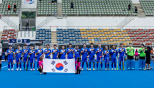 웨일스와경기에앞서국민의례를하는한국선수단.사진[연합뉴스]한국남자하키대표팀이FIH네이션스컵에서기분좋은첫승을신고했다.민태석감독체제의한국은16일말레이시아쿠알라룸푸르에서진행된2025FIH네이션스컵조별리그A조2차전에서웨일스를3-2로물리쳤다.전반을0-1로뒤진상황에서후반대역전극을연출한한국은양지훈(김해시청),이정준,임도현(이상성남시청)의연속득점으로승부를완전히뒤바꿨다.총8개국이참가한이번대회에서정상에오르는팀은2025-2026시즌상위리그인FIH프로리그승격티켓을얻게된다.한국은18일남아프리카공화국과조별리그최종전을벌인다.