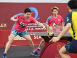 남자탁구임종훈-안재현이사진은월드테이블테니스(WTT)미국스매시에서세계1위를꺾고우승했다.사진은2025국제탁구연맹(ITTF)세계선수권대회모습./사진=뉴스1한국남자탁구임종훈-안재현(이상한국거래소)이월드테이블테니스(WTT)미국스매시에서세계1위를꺾고우승했다.세계랭킹5위임종훈-안재현조는13일(한국시간)미국라스베이거스에서열린대회남자복식결승에서세계랭킹1위인프랑스펠릭스르브렁-알렉시스르브렁조에3-1(4-1113-1111-511-6)역전승했다.임종훈-안재현조는지난6월WTT스타컨텐더류블랴나결승전에서도'르브렁형제'를3-0으로완파하고우승한바있다.임종훈-안재현조는이날승리로올해벌써3번째우승트로피다.지난3월WTT스타컨텐더첸나이에서올해첫우승을차지했다.임종훈-안재현조는첫게임에서고전하며4-11로끌려가며아쉬운출발을알렸다.두번째게임에서도6-10으로위기였지만거센추격을통해10-10동점을만들어냈다.흐름을가져온임종훈-안재현조는13-11로역전에성공했다.세번째게임에서11-5로승리하면서네번째게임도11-6으로가져오면서역전극을완성했다.임종훈은신유빈(대한항공)과함께출전한혼합복식에서은메달을수확하며이번대회에서금메달1개,은메달1개를수확했다.