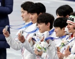 [밀라노=뉴시스]박주성기자=20일(현지시간)이탈리아밀라노아이스스케이팅아레나경기장에서열린2026밀라노·코르티나담페초동계올림픽쇼트트랙남자5000m계주결승에서은메달을획득한대한민국대표팀이시상대에서서기쁨을나누고있다.사진오른쪽부터황대헌,이정민,이준서,임종언,신동민.2026.02.21./사진=박주성한국남자쇼트트랙대표팀이2026밀라노·코르티나담페초동계올림픽남자5000m계주에서은메달을딴가운데다음올림픽에서는반드시금메달을목에걸겠다는의지를내비쳤다.임종언,황대헌,이정민,이준서로이뤄진한국대표팀은21일(한국시각)이탈리아밀라노아이스스케이팅아레나에서열린2026밀라노·코르티나담페초동계올림픽쇼트트랙남자5000m계주결선에서네덜란드에이어2위로결승선을통과하며은메달을따냈다.뉴시스에따르면대표팀은경기를마친후취재진을만나"다같이웃을수있어기쁘다"고말했다.주장이준서는"긴여정이마무리됐다.동료들에게고맙고아무도다치지않고다같이메달을목에걸고끝나행복하다"고소감을밝혔다.준결승을뛴후결승은빙판밖에서지켜보며응원한신동민은"형들이우리를많이이끌어주셨는데그에걸맞는성적이나왔다"면서"경기를뛰는것보다밖에서보는것이더긴장되더라.긴장이많이됐지만의심하지않고경기를봤다"고말했다.[밀라노=뉴시스]박주성기자=쇼트트랙남자대표팀이20일(현지시간)이탈리아밀라노아이스스케이팅아레나경기장에서열린2026밀라노·코르티나담페초동계올림픽쇼트트랙남자5000m계주결승에서은메달을차지하자기뻐하고있다.2026.02.21./사진=박주성이날대표팀은평소와는다른순서로경기에나섰다.준결선까지는임종언이마지막순번이었는데결선에서황대헌이마지막을맡았다.이준서는"아무래도결승이라경험이가장많은(황)대헌이형을마지막주자로배치했다.이정민이추월하는능력이좋아3번에넣었다"며"추월이이뤄졌을때속도가빠른(임)종언이가거리를벌리는작전이었다"고설명했다.황대헌은"계주에서2번주자로뛰는것을많이연습하지않았는데동생들이믿고이끌어줬다.뒤에서믿고잘따라와줘서끝까지승부할수있었다"며"동생들과이자리에있는순간이고맙고소중하다"고했다.2006토리노올림픽이후20년만에이탈리아에서금메달을따겠다는목표를이루지못한것에대해이준서는"아쉽기도하지만네덜란드가우리보다운이좋았다고생각한다"며"4년뒤에재도전하겠다"고의지를내보였다.황대헌도"아쉬움도있지만더잘준비해서4년후에더좋은결과가있도록노력하겠다"고각오를다졌다.
