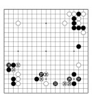 패자2회전○강동윤9단●안성준9단초점3(28~38)2007년여름이사람만큼바쁜사람이없었다.6월엔왕위전도전5번기를치르고7월엔일본에서열린후지쓰배세계대회결승과전자랜드배왕중왕전결승3번기에나갔다.8월엔대만에서벌어진중환배에서우승했다.32세이창호는왕위전에서12연속우승했다.후지쓰배에서는10세밑박영훈에게져준우승했다.전자랜드배에서는18세강동윤에게거의이겼던판을놓쳐2위에머물렀다.5단강동윤은프로7년만에처음으로큰대회에서우승했다.하지만우승인터뷰때그의얼굴은기뻐보이지않았다."다진바둑이었다.이창호9단에게너무미안한마음뿐이다.정말운좋게이겼다."행운이따랐지만우승이그리쉬운가.최강이창호를결승에서이긴일은강동윤바둑인생에한획을그었다.속셈을알수없는수의바둑을보면재미있다.두사람눈과손이한곳에머무르지않고바쁘게움직인다.백36에붙였다.먼저<참고1도>1로의움직임은흑33이바라는바,무거운걸음이다.백38로<참고2도>끊으면8까지흑이빙그레웃는다.[김영환9단]