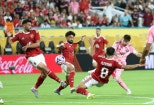 이집트알아흘리와0-0비겨전반공세알아흘리PK실축메시분전으로후반전주도권개막전관중6만명‘흥행저조’K리그대표울산최하위분류리오넬메시(오른쪽)가15일(한국시간)미국플로리다주마이애미의하드록스타디움에서열린클럽월드컵대회조별리그A조1차전알아흘리와의경기에서슛을날리고있다.신화연합뉴스‘축구의신’리오넬메시의인터마이애미(미국)가2025국제축구연맹(FIFA)클럽월드컵개막전에서이집트의명문구단알아흘리와비겼다.마이애미는15일(한국시간)미국플로리다주마이애미의하드록스타디움에서열린대회조별리그A조1차전에서알아흘리와0-0무승부를기록했다.대륙별클럽대항전우승팀들끼리맞붙었던예년과달리이번대회부터클럽월드컵은32개팀이참여하는대형이벤트로펼쳐진다.총상금규모가10억달러(약1조3678억원)에달하고,대회개최주기도국가대항전인월드컵처럼4년이다.A조에서는마이애미,알아흘리,포르투(포르투갈),파우메이라스(브라질)가경쟁한다.홈그라운드이점을살려경기전마이애미의강세가예상됐으나기선을제압한쪽은알아흘리였다.이집트리그44회우승에빛나는알아흘리는킥오프8분만에날카로운역습으로마이애미의간담을서늘하게했다.알아흘리의에이스에맘아슈리의마무리가골키퍼정면으로향해득점으로이어지지는않았다.알아흘리는전반30분에는스트라이커웨삼아부알리가골망을흔들었으나오프사이드가선언돼득점이취소됐다.11분뒤알아흘리는페널티킥을얻는결정적인기회를맞았다.페널티박스에서마이애미수비수세고비아가상대선수를쓰러뜨리는장면이심판에게포착되면서알아흘리에또한번득점기회가찾아온것이다.하지만페널티킥키커로나선트레제게의슈팅이골키퍼오스카르우스타리의선방에막히면서알아흘리는아쉬움을삼켰다.전반내내알아흘리의압박에고전한마이애미는전반막판메시를앞세워반격에나섰다.메시는전반45분시원한왼발슈팅으로골대를강타한데이어2차례연속으로코너킥으로골문을직접노리며상대를압박했다.메시는후반12분에도골대상단구석을노리는왼발중거리슛으로상대골문을위협했으나골키퍼선방에막혔다.7분뒤에는골키퍼의허를찔러골대하단구석을찌르는프리킥을찼지만,이번에는옆그물을때렸다.메시의활약으로마이애미는주도권을찾아왔지만쉽게골문을열지못했다.후반40분메시의왼발크로스를받은마이애미공격수파파가공중에서헤더슛을날렸지만이집트국가대표골키퍼무함마드엘셰나위의선방으로무위로돌아갔다.대회개막전의관중수는6만927명으로집계됐다.한편K리그를대표해이번대회에참가하는울산HD는대회에나선32개팀가운데전력이가장약한팀으로분류됐다.클럽월드컵을중계하는다즌(DAZN)은32개팀파워랭킹을작성하면서울산을32위로배치했다.울산은조별리그F조에서마멜로디선다운스(남아프리카공화국),플루미넨시(브라질),도르트문트(독일)와경쟁한다.울산이‘1승상대’로지목한마멜로디는29위로평가됐다.플루미넨시는18위,도르트문트는9위였다.이강인과김민재가뛰는파리생제르맹(프랑스)과바이에른뮌헨(독일)은2위와3위였다.가장전력이강한팀으로는레알마드리드(스페인)가선정됐다.국가대표골키퍼조현우(울산)는우리나라선수로는유일하게클럽월드컵에서주목할만한50인에선정됐다.