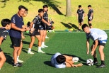 [현장]전국중학교선수들모인OK읏맨럭비아카데미성료▲30일인천하나글로벌캠퍼스에서열린'OK읏맨럭비아카데미'에서읏맨럭비단오영길감독(왼쪽두번째)이선수들을지도하고있다.ⓒ박장식"우리중학교선수들의수준이높아놀랐습니다.이렇게많은중학교친구들이럭비라는종목을선택해서아카데미까지참석한다는것도놀랐지만,선수들의수준을보니장래의한국럭비가기대됩니다."일본최고의고교럭비제전인'하나조노'(花園)에오사카조선고급학교소속으로출전해4강에올랐던승리의주역이자,지난해까지일본에서현역럭비선수로뛰었던김관태선수가한국의중학생럭비선수들과함께훈련을한뒤전한소감에는꽤나울림이느껴졌다.8월29일부터31일까지인천광역시서구하나글로벌캠퍼스에서'OK읏맨럭비아카데미:럭비,진짜를만나다'가열렸다.읏맨럭비단오영길감독과코칭스태프,선수들이'일일코치'로10개학교180여명의중학생선수들과함께훈련에나선이번아카데미는중학교선수들에겐체계적인럭비공부의기회가됐다.선배들이직접알려주는럭비▲30일인천하나글로벌캠퍼스에서열린'OK읏맨럭비아카데미'에서테이핑교육이이루어지고있다.ⓒ박장식30일찾은하나글로벌캠퍼스에서는중학생선수들이열띤훈련을이어가고있었다.첫날이었던29일에는럭비의패스,킥과같은기본훈련을치렀고,하루뒤인이날은태클이나러크,볼운영등응용훈련을치르고있다고현장에서만난관계자가알려왔다.OK금융그룹읏맨럭비단선수들은물론오영길감독까지'일일코치'로나섰다.오영길감독은밝은표정으로중학생선수들이뛰는모습을지켜보면서,어떤방향으로뛰어야효율적으로전략을짤수있는지,패스는어떻게방향을잡아야하는지등을알려줬다.교육프로그램도알찼다.럭비국제심판으로활약하고있는서인수해설위원이선수들을위해럭비의규칙을알려주는시간을가졌고,럭비국가대표출신의스포츠심리학전문가최재섭박사도강연에나섰다.그중에서도가장호응이높았던교육은테이프로지지대를잡고,다친부위를지지할수있는'테이핑'을배우는강의였다.특히발목은럭비를하면서가장다치기쉬운신체부위인데매번통증이있을때마다무작정참거나매번의무요원의도움을받기는어렵기에직접테이핑을할수있는방법을아는것은큰도움이된다.학생선수들은시범에따라'첫테이핑'을완성해보였다.선수들의자립심을높일수있는교육도뒤따랐다.현장의럭비단관계자는"교육기간입어야하는유니폼도사흘동안두벌만을제공했다"며,"운동선수로활동하려면직접옷을빨아입는일이많을수밖에없는데,직접빨래방법을알아운동복을세탁하고건조하면서스스로할수있는일을하나라도늘리길바랐다"라고설명했다.기적썼던'럭비선배'의당부"연습은전력으로"▲30일인천하나글로벌캠퍼스에서열린'OK읏맨럭비아카데미'에서중학생선수들이럭비훈련에나서고있다.ⓒ박장식특히선수들에게특별할영화상영,그리고'관객과의대화'도이어졌다.재일교포학생들로구성된오사카조선고급학교럭비선수들이'럭비의고시엔',하나조노에서4강에오르는기적을담아지난2014년개봉된'60만번의트라이'의상영이이어진것.당시오사카조선학교의감독이었던오영길읏맨감독도흐뭇한듯영화를지켜봤고,4강진출당시주장으로뛰었던김관태선수도일본에서한달음에달려와중학생선수들과함께훈련하고영화를다시금지켜보기도했다.후배선수들에게응원을부탁한다는중학교1학년선수의질문에김관태선수는"중학교1학년친구들에게는2년의기회만이남았다고생각하길바란다"며"하루하루전력으로연습해서오늘함께훈련한친구들과좋은커뮤니케이션을하면,앞으로럭비를더욱잘할수있지않을까싶다"고화답했다.한국과일본에서모두지도자를겪은만큼한일양국의럭비인프라차이를묻는질문도이어졌다.오영길읏맨감독은"일본의중학교와중학클럽럭비팀이200개에달하는데,한국은중학교럭비팀이20개가못된다.그럼에도우리선수들의수준은일본과다름이없을정도로높다"며"다만일본에비해한국선수들은경기횟수가적어경험이부족한것이아쉬운만큼,대회가있을때마다온힘을다한다면좋은선수가될수있을것"이라고답했다.사흘동안프로에못잖을정도로한층수준높은럭비를접한선수들의반응도긍정적이었다.서울사대부중김시훈선수는"평소상대편으로만나던다른학교선수들과만났기에첫날에는어색했는데,훈련과운동을통해서로친해질수있어좋았다"며"필드에서했던태클훈련이기억에남는다.코치님과감독님이선수로서중요한점들을많이알려주셔서,기억에많이남을것같다"고소감을전했다.오영길읏맨감독역시"고교감독이후학생선수들을지도한것이오래간만이어서더욱신선했고,선수들이하나씩잘하는부분을확인할수있었다"며"긍정적인지도를통해선수들이자신감을높여다행이다.오늘경험을토대로학생선수들이고교,대학에서도럭비를잘하고싶다는소원을잘이루어다시만날수있었으면좋겠다"고말했다.