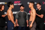 [스타뉴스|박건도기자]박현성./사진=UFC제공준비는모두끝났다.UFC플라이급(56.7kg)랭킹6위타이라타츠로(25·일본)와맞붙는박현성(29)은57.2kg으로플라이급계체를통과했다.ROADTOUFC시즌1플라이급우승자'피스오브마인드'박현성(10승)은오는3일(한국시간)미국네바다주라스베이거스UFC에이펙스에서열린'UFC파이트나이트:타이라vs박현성'메인이벤트에서타이라(16승1패)와5라운드경기를치른다.사상최초메인이벤트한일전이다.박현성은세계6위타이라를상대로UFC무대에진한인상을남길기회를잡았다.계체량은UFC에이펙스에서열렸다.UFC에따르면타이라또한57.2kg으로플라이급일반경기한계체중을맞췄다.경기5일전급하게성사된매치다.박현성은짧은시간에도무리없이체중을맞췄다.박현성은계체량이시작되자마자가장먼저나와여유롭게계체에성공했다.그는계체후"잘회복하고있다.이제시합만남았다"며"좋은모습보여드리겠다"고각오를밝혔다.열세다.해외도박사들은박현성의승리확률을25%정도로내다보고있다.타이라는UFC6승1패로지난해말랭킹1위였던브랜든로이발과접전을벌인강자다.주짓수블랙벨트로강력한백포지션컨트롤능력을자랑한다.킥복싱베이스로타격도만만치않다.하지만박현성은"상대가누구든내가이길수있단걸보여주고싶다"고승리를자신했다.타이라타츠로(왼쪽)와박현성의페이스오프./사진=UFC제공타이라에게도물러설수없는일전이다.타이라는원래랭킹4위아미르알바지와붙기로돼있었다.하지만알바지의신체에이상이발견되면서랭킹밖에있는박현성이경기5일전긴급투입됐다.그는"로이발전으로경험이얼마나중요한지배웠다"며"이제내가박현성에게경험의중요성을알려줄차례"라고큰소리쳤다.이번매치는'코리안좀비'정찬성의은퇴이후첫한국인파이터의UFC메인이벤트다.박현성은승리시정찬성이후처음으로한국선수로서UFC랭킹에진입한다.UFC첫한일전메인이벤트이자,첫'아시아대아시아'메인이벤트다.UFC의아시아등용문ROADTOUFC출신으로첫UFC본무대메인이벤트를장식한다.박현성은"타이라타츠로를이긴다면많은기회가열릴것이다.랭킹에진입할거고,타이틀전에도가까워질것"이라면서도"현재로서는그런것에전혀신경쓰지않고있다.오직승리에만집중한다"고말했다.타이라는생애첫패배를딛고더높이올라가기위해절치부심했다.로이발전부족했던스트렝스앤컨디셔닝과타격훈련에특히집중했다.다수의일본정상급파이터들을홈인오키나와에초청해훈련했고,경기한달전엔미국콜로라도덴버에가서UFC밴텀급(61.2kg)랭킹4위코리샌드헤이건,7위'치토'말론베라와도훈련했다.그는"이번에반드시승리해타이틀도전자라인에들어가겠다"고강조했다.