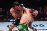 디에고로페스(왼쪽)와제앙실바.사진=UFCUFC페더급(65.8kg)랭킹2위디에고로페스(30∙브라질)가13연승의‘로드’제앙실바(28∙브라질)를타격으로피니시하며부활에성공했다.로페스(27승7패)는지난14일(이하한국시간)미국텍사스주샌안토니오프로스트뱅크센터에서열린‘노체UFC:로페스vs실바’메인이벤트에서10위실바(16승3패)에게2라운드4분48초스피닝백엘보에이은펀치로TKO승을거뒀다.챔피언알렉산더볼카노프스키에게당한패배를씻어냈다.로페스는지난4월UFC314에서공석인UFC페더급타이틀을놓고볼카노프스키와맞붙었으나실력차를보이며패배했다.하지만이번에UFC5연속피니시승을달리던기세좋은신예를막아서며본인말대로‘수준차’가존재한단걸입증했다.로페스는주짓수고수답게1라운드그라운드에서실바를압도했다.실바가돌려차기를시도하는틈을타로페스는실바를그라운드로그라운드로끌고내려갔다.풀마운트포지션을차지한뒤강력한엘보와펀치로실바의안면에출혈을일으켰다.실바가간신히포지션을회복하긴했지만2분여간로페스는강한대미지를입혔다.2라운드실바의타격압박을노린스피닝백엘보카운터가제대로들어갔다.1라운드그라운드에서밀린실바는강력한타격압박을걸었다.몇차례강펀치가들어갔고,로페스는뒤로물러나기시작했다.흥분한실바는스피닝엘보와원투펀치를난사하며전진했고,이틈을노린로페스의스피닝엘보카운터가터졌다.앞으로쓰러진실바에게로페스가계속펀치를날리자심판은경기를중단했다.디에고로페스(위)와제앙실바.사진=UFC로페스는“이번주내내난수준차이가있다고말했다”며“난정상급수준이고오늘밤그걸증명했다”고소감을밝혔다.피니시스피닝백엘보에대해선“백스테이지에서연습했고,그때가정확한타이밍이란걸알았다”고설명했다.이번경기를앞두고로페스는실바측과치열한감정싸움을벌였다.로페스는경기후기자회견에서“실바는이번경기에서말이너무많았다”며“난침착한태도를유지했고,모두에게옥타곤에서얘기하겠다고했다”고돌아봤다.그는“실바는말을줄이고,훈련을더해야한다”고일침을가했다.로페스는타이틀도전권을원하지만바로한경기만에다시타이틀전을받긴쉽지않단사실을잘알고있다.그는“기꺼이한번더싸우겠다”면서도“오늘밤훌륭한승리를거뒀으니타이틀재도전을위한발판을마련했다”고평가했다.제앙실바까지무너지며무패행진을달리던파이팅너드의대표선수들은모두패배를기록했다.지난주카이우보할류,마우리시우루피에이은3연패다.실바는“불행히도감정이나를잡아먹었다”며“그냥휘두르고싶어서너무서둘러버렸다”고돌아봤다.이어“파이팅너드는회의해서문제점을발견하고,더나아질것”이라며“미안하다,돌아오겠다”고다짐했다.코메인이벤트에서는현역정형외과의사‘블랙스파르탄’다비드마르티네스(27∙멕시코)가UFC밴텀급(61.2kg)랭킹9위롭폰트(38∙미국)를꺾는파란을일으켰다.마르티네스는폰트와치열한타격전끝에3라운드녹다운까지얻어내며만장일치판정승(29-28,29-28,29-28)을거뒀다.마르티네스는UFC데뷔반년만에밴텀급랭킹에진입이유력해졌다.그는지난해10월데이나화이트의컨텐더시리즈(DWCS)를통해UFC와계약한후지난3월데뷔전에서사이몽올리베이라를상대로1라운드TKO승을거뒀다.김희웅기자