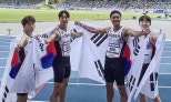 서민준·조엘진·이재성·김정윤38초50으로남아공0.3초차제쳐1년새0.19초앞당겨기대감‘업’한국육상은여전히불모지다.‘필드’종목인남자높이뛰기의‘스파일점퍼’우상혁(29·용인시청)이세계최정상급선수로활약하고있지만,‘트랙’종목에서는아시아무대에서조차정상급선수를찾아보기어려운게현실이다.이런상황에서낭보가날아들었다.서민준(21·서천군청),나마디조엘진(19·예천군청),이재성(24·광주광역시청),김정윤(20·한국체대)로구성된한국남자400m계주팀이지난27일독일보훔의로르하이데스타디움에서열린2025라인-루르하계세계대학경기대회(U대회)남자400m계주결선에서38초50으로남아프리카공화국(38초80)을제치고우승했다.한국육상이U대회남자400m계주를포함한릴레이종목에서금메달을따낸건32회째를통틀어이번이처음이다.세계종합대회에서계주종목우승도최초로괄목할만한성과다.김정윤(왼쪽부터),이재성,나마디조엘진,서민준물론아직세계무대에서기에는부족한기록이다.전문가들은38초2대기록을내야올림픽이나세계선수권출전권을얻을것으로분석한다.현재한국신기록은38초49로0.2초이상단축해야한다.쉽지않은목표지만최근기세를보면불가능하지도않다.한국남자400m계주대표팀은최근1년사이에기록을0.19초나줄였다.지난해6월전국종별육상경기선수권에서세운38초68기록을지난5월10일중국광저우에서열린2025세계릴레이선수권예선에서서민준,나마디조엘진,이재성,고승환(28·인천광역시청)이함께달려38초56으로0.12초앞당겼다.그대회패자부활전에서앵커를고승환에서이준혁(24·상무)으로바꿔38초51로0.05초더앞당겼다.5월31일구미에서열린2025아시아육상선수권계주결선에서는38초49로또한번신기록을세웠다.남자100m에서비슷한기록을낸또래선수들이함께등장하면서기대감은더커지고있다.이준혁은10초18,나마디조엘진은10초30,이재성은10초32,서민준과김정윤은10초35의개인최고기록을보유중이다.비웨사다니엘가사마(22·안산시청)도부상을털어내고,올해10초29의개인최고기록을세웠다.이들의목표는김국영(34·광주광역시청)이2017년세운한국신기록인10초07이다.젊은선수들이개인기록도전에힘쓰면서팀으로꾸준히호흡을맞춘다면400m계주기록도세계수준에다가갈수있을전망이다.