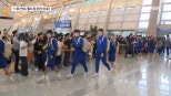 축구대표팀이팬들의뜨거운응원속에결전지이라크로떠났습니다.11회연속월드컵본선진출을확정하고돌아왔으면좋겠네요.스포츠뉴스였습니다.영상취재:김석호기자