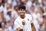 루블료프에역전승거두고男단식8강행87경기만75승,메이저최소경기75승타이윔블던8강진출을확정하며포효하는카를로스알카라스.AFP연합뉴스[서울경제]남자테니스세계랭킹2위카를로스알카라스(22·스페인)가윔블던(총상금5350만파운드·약997억원)8강에올라대회3연패기대를한뼘더키웠다.알카라스는6일(현지시간)영국런던의올잉글랜드클럽에서열린대회남자단식16강전에서안드레이루블료프(14위·러시아)에3대1(6대7<5대7>6대36대46대4)역전승을거두고8강에올랐다.지난해까지2년연속윔블던을제패한알카라스는대회연승행진을‘18’로늘렸다.또한5월로마오픈부터공식경기연승행진도‘22’로늘렸다.이기간알카라스는3개대회연속으로우승트로피를수집했다.알카라스의8강상대는영국의캐머런노리(61위)다.역대전적에서알카라스가4승2패로앞서지만가장최근대결인2023년리우오픈결승전에서는노리가2대1로이겼다.알카라스는메이저통산87번째경기에서75승째를거뒀다.비에른보리(스웨덴),존매켄로(미국)와역대최소경기메이저75승타이기록이다.여자부에서는세계1위아리나사발렌카(벨라루스)가엘리서메르턴스(23위·벨기에)를2대0(6대47대6<7대4>)으로물리치고8강고지를밟았다.사발렌카는2023년호주오픈,지난해호주오픈과US오픈에이어네번째메이저타이틀획득을노린다.