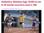 시미즈소라토,100m10초00주파18세이하세계신기록달성시미즈(가운데)의100m10초00주파소식을크게다룬일본교토뉴스./교도뉴스홈페이지캡처[마이데일리=심재희기자]'16살고등학생이100m기록10초00달성!'일본을넘어전세계가난리가났다.일본육상단거리기대주가세운기록때문이다.일본이시카와현세이료고등학교재학중인시미즈소라토(16)가남자육상100m에서10초00의기록을적어냈다.18세이하(U-18)세계신기록을경신했다.2023년크리스턴밀러와푸리폴본손이세웠던10초06을훌쩍넘어섰다.시미즈는26일일본히로시마의핫스태프필드히로시마에서펼쳐진일본고교육상대회남자100m결선에서대기록을작성했다.3번레인에서서폭발적인스프린트로가장먼저결승선을통과했다.빠른스타트로좋은출발을보인후엄청난속도로레이스중후반부에독주를벌이며1위로골인했다.자신의10초00기록을확인한뒤계속해서빠르게트랙을돌면서기쁨을만끽했다.2009년생으로고등학교2학년인그가10초00의18세이하세계신기록을만들며스포트라이트를받고있다.오는9월일본도쿄에세계선수권대회에출전할수있을지도관심을모은다.스페인언론'마르카'는'만16살일본소년이100m를10초만에달려U-18세계신기록을세웠다'고조명했다.매체는시미즈의질주영상을기사내에첨부하며세계적인스프린터로성장할것으로내다봤다.시미즈가세운10초00기록은일본내에서도최상위급에속한다.일본최고기록은9초98이다.기류요시히데가2017년9월9일9초98의일본기록을만들었다.만16살인시미즈의기록이기류에게0.02차밖에뒤지지않는다.여러가지부분을보완하면,공식기록9초대진입과함께일본신기록및아시아신기록도전도가능할것으로보인다.아시아기록은중국의쑤빙톈이2021년8월1일에세운9초83이다.한편,한국은시미즈의10초00기록을부럽게바라볼수밖에없다.아직9초대진입을이루지못했기때문이다.2017년김국영이6월27일쓴10초07이한국기록을남아있다.김국영은2010년6월7일31년묵은한국기록을깨뜨렸다.서말구가1979년9월9일생산한10초34의기록을경신하며10초31을찍었다.이후네차례자신의기록을넘어서며10초07을썼다.하지만결국9초대에는진입하지못했다.10초29의기록을가지고있는비웨사다니엘가사마가김국영을이을기대주다.