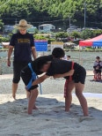 사진=대한씨름협회제공“우리의전통스포츠씨름을보다친숙하게!”대한씨름협회는26일부터27일까지이틀간전라남도장흥군탐진강일원서열린‘제18회정남진장흥물축제’에2025찾아가는전통씨름의네번째행사로‘길거리씨름한판’을진행,성공적으로개최했다.정남진장흥물축제는2025문화체육관광부문화관광지정축제로선정된여름대표축제로,장흥의깨끗한물을테마로건강함과즐거움,시원함을느낄수있는지역대표행사다.더불어이번행사기간중열린‘길거리씨름한판’을통해관람객과참여자들에게씨름을체험하고즐길수있는특별한기회를제공했다는설명이다.‘길거리씨름한판’은전씨름선수들이선보이는박진감넘치는시범경기로시작됐다.이어씨름체험교실을개최했고,참가자들은선수들에게직접간단한씨름기술을배우고실제로체험해보는시간을가졌다.사진=대한씨름협회제공체험이후에는남자부,여자부각각16강으로구성된‘즉석씨름대회’가진행돼현장의열기를이어갔다.치열한승부끝에남자부에서는강도현씨가우승을차지했으며,여자부에서는주선지씨가우승트로피의주인공이됐다.대회우승자및준우승자,공동3위에게는트로피와함께상금이수여됐으며,참가자전원에게는소정의기념품이제공돼행사의의미를더했다.찾아가는전통씨름은문화체육관광부와서울올림픽기념국민체육진흥공단의지원을받아민속씨름저변확대를위해대한씨름협회에서운영하는사업이다.전국의다양한축제(지역축제,대학교,전통시장,해변축제등)와연계해지역사회및다양한계층에게씨름을체험할수있는기회를제공한다.대한씨름협회관계자는“특히이번정남진장흥물축제에서열린길거리씨름한판은축제의즐거움을더하는동시에전통스포츠인씨름을보다친숙하게체험할수있는장을마련함으로써,참가자들에게색다른추억과경험을선사했다”고밝혔다.