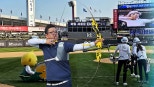 <앵커> 오늘(25일)KT위즈의수원홈구장엔특별한손님들이찾아왔는데요.세계선수권준비에한창인양궁대표팀이야구장에서소음적응훈련을가졌습니다. <기자> 폭염속에도야구장을찾은관중앞에서,지난해파리올림픽3관왕김우진,임시현을비롯한태극궁사들이힘차게활시위를당깁니다. [대한민국~짝짝짝짝짝~] 오는9월광주에서열리는세계선수권을앞두고,낯선환경,많은관중과소음속에서도고도의집중력을유지하기위한훈련을한건데요. 시끄럽게음악을틀어놓고,바로옆에서요란하게북도치고,그래도선수들은흔들림이없네요. [임시현/양궁국가대표:오히려소음이있으니까조금더실전같다는생각이많이들어서연습했던걸시도해볼수있는좋은기회였던것같고요.] 16년만에국내에서열리는세계선수권에서우리선수들은지난해파리올림픽처럼다섯개전종목석권을노립니다. (영상취재:정상보,영상편집:박정삼)
