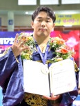 17회대학장사대회용사급우승결승서고민혁에비디오판독승정성재·장민수각각2·3위입상제17회대학장사씨름대회에서우승한동아대김민규.부산씨름협회제공동아대김민규가올해전국씨름대회‘4관왕’이라는위업을이뤘다.김민규는지난21~24일전남구례군구례체육관에서열린제17회대학장사씨름대회대학부개인전용사급(-95kg)에서우승을차지하며올들어서만4번째정상에올랐다.올해대회에는전국72개팀에서선수450여명이참가했다.김민규는준결승전에서인하대이재웅을만나접전끝에2-1로이겨결승에올랐다.대구대고민혁과의결승첫판에서들배지기로이겼지만둘째판에서는기습적인반격되치기를당해한판을내줬다.김민규는마지막셋째판에서들어뒤집기기술로상대를넘겼지만,주심은고민혁의손을들어주었다.이때동아대하성우감독이비디오판독을신청해승패를뒤집었다.김민규는반여고시절제52회회장기용사급에서우승해주목을받기시작했다.그는올해는3월경북문경시에서열린제55회회장기와같은달경남통영시에서개최된제39회시도대항,4월충북증평군에서진행된제26회증평인삼배대회에서각각우승했다.김민규는안락초-연천중-반여고를거쳐동아대에진학한부산지역씨름인재다.정신력이강한데다야간에혼자체력운동을하는등꾸준하게자기관리를하는성실성이장점이다.한편김민규이외에김도현(경남대)이경장급,이용수(울산대)가소장급,하상원(영남대)이청장급,박주환(울산대)이용장급,설준석(울산대)이역사급,이혁준(인하대)이장사급에서각각우승했다.단체전에서는전통의강호인하대가단국대를4-3으로꺾고정상에올랐다.동아대정성재는개인전소장급에서2위를,장민수는장사급에서3위를각각차지했다.