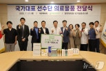 1억7천만원상당의료물품기부김택수진천선수촌장(오른쪽)과손지훈파마리서치대표가17일국가대표선수단의료물품전달식을진행한뒤기념촬영을하고있다.(대한체육회제공)(서울=뉴스1)권혁준기자=대한체육회는17일충북진천국가대표선수촌대회의실에서파마리서치와1억7000만원상당의의료물품을전달하는'국가대표선수단의료물품전달식'을개최했다고밝혔다.이날전달식에는김택수국가대표선수촌장,손지훈파마리서치대표등관계자들이참석했다.파마리서치는내년열리는2026밀라노·코르티나동계올림픽과2026아이치·나고야하계아시안게임에서한국선수단이선전하길기원하며11종의의약품,의료기기,화장품등1억7000만원상당의의료물품을기부했다.김택수선수촌장은"내년동계올림픽과아시안게임을준비하는선수들을위해의료물품을기증해주신파마리서치에감사드린다"며"파마리서치는지난10년간태릉선수촌부터꾸준히기부를해온진정성있는기업으로,한국스포츠발전에크게기여해주고계신다"는인사와함께감사패를전달했다.손지훈대표는"국가대표선수들에게실질적인도움을줄수있는의료물품을기부할수있게돼매우기쁘게생각한다"며"국위선양을위해힘쓰는국가대표선수들과뒤에서묵묵히지원하는관계자분들께도응원의박수를보낸다"고말했다.
