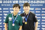‘지역과함께한스포츠축제’를내건‘제20회문체부장관기전국생활체육당구대회및2025남원전국당구선수권’이16일전북남원에서폐막했다.이번대회에는조명우의우승과‘슈퍼루키’김현우의탄생등많은화젯거리를남겼다.시상식에서함께기념촬영하는조명우와김현우.(사진=대한당구연맹)16일전북남원에서5일간의열전마무리,지역과함께한스포츠축제지향,수영장,뮤직콘서트,프로암등선봬‘한여름밤의당구축제’‘지역과함께한스포츠축제’를내건‘제20회문체부장관기전국생활체육당구대회및2025남원전국당구선수권’(이하남원전국당구선수권)이지난16일5일간의대장정을마쳤다.이번대회에는전문선수와생활체육선수(동호인)16000여명이참가,치열한경합을벌였다.전문선수부에서는조명우(남3쿠션)김하은(여3쿠션)권호준(남포켓10볼)임윤미(여포켓10볼)이대규(스누커)이근재(잉글리시빌리어드)고태영김보건(포켓9볼복식)등이우승의영광을누렸다.다양한콘텐츠결합새로운당구대회로의변화시도‘눈길’특히3쿠션에서는‘중3’김현우가김민석김행직을연파하고조명우와대등한경기를선보이며4강까지진출‘슈퍼루키’의탄생을알렸다.이번대회에서는수영장,뮤직콘서트,프로암등다양한이벤트가결합함으로써새로운당구대회로의변신을시도했다.사진은대회장앞에설치된수영장.(사진=대한당구연맹)‘한국당구의미래’인학생부에서는김윤종(고등부남3쿠션)신수빈(고등부여3쿠션)임세민(중등부3쿠션)구성욱(초등부1쿠션)김주혁(고등부남포켓9볼)박소율(고등부여포켓9볼)신정후(중등부포켓9볼)배서영(초등부포켓9볼)등샛별들이1위에올랐다.900여명이참가한생활체육선수부문에서는윤기두(남3쿠션A조)문재영(남3쿠션B조)이상혁(남3쿠션C조)차인태(남3쿠션D조)고탁완(남3쿠션E조)황태우(남3쿠션F조)가우승했다.여자3쿠션에서는김샛별과김민아가A,B조1위를차지했다.포켓볼남자A조는김형곤,포켓볼남자B조는전재신이우승컵을들었다.여자포켓볼에서는김은주와백혜영이A,B조우승을차지했고,김키릴과얄렉스는포켓볼복식A조,박상미와홍선화는포켓볼복식B조에서우승했다.특히대한당구연맹(회장서수길)은이번대회에서프로암,뮤직콘서트,시민을위한수영장,관중이벤트등다양한콘텐츠를결합해새로운형태의당구대회로의변화를시도했다.아울러당구대중화와스포테인먼트대회로의변화를위해대한당구연맹은중계권파트너사인주식회사SOOP과협업해스트리머당구대회,콘서트등다채로운프로그램을진행했다.이중SOOP의대표적인음악콘텐츠인‘락케스’를남자3쿠션결승전특별공연으로기획해힙합,색소폰,국악,트로트등장르를넘나드는약1시간의라이브무대를선보였다..한편,이번대회주요경기는‘SOOP’과‘SOOPTV’채널을통해생중계됐으며,대한당구연맹SOOP공식채널을통해다시보기도가능하다.[이선호MK빌리어드뉴스기자]