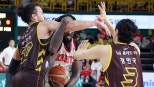 ▲9일경남창원체육관에서열린2024∼2025시즌프로농구창원LG세이커스와서울SK나이츠의챔피언결정전3차전경기.LG아셈마레이가SK자밀워니를디펜스하고있다. 프로농구LG가챔피언결정에서3연승을달리며구단사상첫우승을눈앞에뒀습니다. LG는오늘(9일)창원체육관에서열린KCC프로농구챔피언결정(7전4승제)3차전홈경기에서SK를80대63으로물리쳤습니다. 1∼3차전을내리잡아낸정규리그2위LG는우승까지1승만남겨뒀습니다. LG는프로농구원년인1997년부터리그에참가했지만아직챔프전우승경험이없습니다. 2000-2001시즌,2013-2014시즌챔프전준우승이최고성적입니다. 반면정규리그역대최소인46경기만에우승을확정한SK는힘한번제대로써보지못하고LG에챔프전우승트로피를내줄위기에처했습니다. 첫쿼터에서연속3어시스트를기록하며공격을지휘한양준석을앞세워LG가기선을제압했습니다. 양준석이뿌리는공을정인덕은외곽포로,아셈마레이는골밑득점과추가자유투로연결하며기세를올렸고,마레이와칼타마요는첫쿼터부터14점을합작했습니다. 2쿼터에서SK가어이없는실책을저지르는사이LG는3점포5방을집중시키며성큼성큼달아났습니다. 47대35로앞선채전반을마친LG는3쿼터에서유기상의3점포로포문을열더니정인덕의코너외곽득점으로18점차로훌쩍달아나일찌감치승부를갈랐습니다. 마레이가20점16리바운드,타마요가18점6리바운드로3연승을쌍끌이했습니다. 양준석도14점8어시스트로펄펄날았습니다. (사진=연합뉴스)