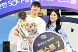 핸드볼에는공격할때7개의포지션이존재한다.최후의후방이면서공격의시작인골키퍼부터상대골라인에포진해있는윙까지공격의유형에따라각각포지션이나뉜다.7개포지션이얼마나유기적으로돌아가느냐에따라사실상승패가갈린다고해도과언이아니다.그때문에핸드볼은대회나리그가끝나면포지션별로가장잘한선수한명씩‘베스트7’을선정한다.2024-25시즌신한SOL페이핸드볼H리그역시남녀각각베스트7을선정했다.라이트백은센터백의오른쪽공격수다.왼손잡이가유리하기때문에자원이한정되다보니귀한대접을받는포지션이다.레프트백과마찬가지로센터백의패스를받아강력한중거리슛을던지거나,측면으로돌파또는피벗과윙으로패스하는등다양한공격이가능한포지션이다.그러다보니대부분강력한파워를자랑하는선수가포진해있다.이번시즌에는그어느때보다라이트백자원이풍부했다.김연빈(두산)과정수영(인천도시공사),서현호(하남시청),김태관(충남도청)이베스트7라이트백후보에올랐지만,이외에도신재섭(상무피닉스),김진영(인천도시공사),하태현(SK호크스)등각팀을대표하는주포들이즐비하다.레프트백보다더강력한파워슈터들이넘친시즌이었다.사진베스트7라이트백을수상한두산김연빈,사진제공=한국핸드볼연맹이런경쟁속에서김연빈이지난시즌에이어2년연속라이트백으로선정됐다.58.8%의득표로쟁쟁했던경쟁과달리결과는싱거웠다.김연빈은118골로득점랭킹4위를기록했다.중거리에서59골,돌파로23골,6미터에서22골을넣었다.기회가보이면수비를파고들고,여의치않으면강력한중거리포를가동했다.김연빈은높은점프를이용한중거리포보다는타이밍을뺐는감각적인슛이돋보였다.도움도63개나기록했고,스틸14개에리바운드19개로수비에서도좋은모습을보였다.17시간13분43초를뛰었다.정수영은지금까지총5회(2019-20,2017,2016,2013,2011)라이트백에선정됐다.이번시즌에는92골을넣었는데6미터에서29골,중거리로21골,속공으로20골,돌파로15골등다양한위치에서골을기록했다.특히87개의도움으로1위를차지했는데4년연속인데다8번째1위를기록했다.그야말로도움의달인이다.불혹의나이에도남자선수중에는두번째로많은20시간16분28초를뛰었다.서현호는89골을넣어득점랭킹10위를기록했고,53개의도움을주었다.중거리에서43골,돌파로28골6미터에서12골을넣었다.서현호는빠른발을활용해측면으로파고드는돌파가탁월했다.스틸5개와19개의리바운드를기록했으며,11시간47분2초를뛰었다.사진두산김연빈,사진제공=한국핸드볼연맹신인왕을차지한김태관이87골을넣으면서17%의득표율을보였다.시원시원한중거리포를선보인김태관은무려75%에달하는66골을중거리슛으로넣었다.높은점프와강력한어깨를활용해수비와멀찍이떨어져먼거리에서과감한슛을던졌다.30개의도움과12개의스틸,15개의리바운드를기록했고,뒤늦게합류하면서10시간22분36초를뛰었다.2022-23시즌레프트백을수상했던신재섭은97골을넣으며상무피닉스의공격을이끌었다.역시중거리슛이57개로가장많았고,7미터드로로23골을추가했다.36개의도움을기록했고,10시간5분50초를뛰었다.김진영은92골을넣으며선배정수영의대체자로자리잡았다.중거리에서49골,6미터에서20골을넣으며데뷔시즌을화려하게마쳤다.11시간27분26초를뛰었다.캐논슈터하면떠오를정도로강력한어깨를자랑하는하태현은2021-22시즌레프트백을수상했다.이번시즌에는75골중중거리에서55골을넣었다.39개의도움을기록했고,10시간57분53초뛰었다.[김용필MK스포츠기자]