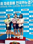 제24회화천파로호배전국카누경기대회시상식사진ⓒ김민정선수[스포티비뉴스=윤서영기자]지난5월전국소년체육대회에서금메달2관왕에오르며강한인상을남긴김민정(길주중3)이또한번활약을이어가며존재감을보여줬다.김민정은지난6월27일부터29일까지강원화천에서열린제24회화천파로호배전국카누경기대회에서개인전과단체전을합쳐5개의금메달을목에걸었다.K-1200m(52초279),K-1500m(2분22초034),K-2200m(50초731),K-2500m(2분11초572),K-4200m(48초306)까지출전한전종목에서1위를차지하며대회최우수선수상까지거머쥐었다.이번대회는2025년카누스프린트청소년국가대표선발전을겸해더욱주목받았다.김민정은본대회에앞서,하루전인6월26일열린카누스프린트청소년대표선발전K-1500m종목에서도2분21초596의기록으로1위를기록했다.이결과로청소년국가대표로선발돼대표팀의일원으로활약할기회를얻었다.김민정은"첫째날컨디션이좋지않아걱정했지만,끝까지최선을다한결과좋은성과로이어져뿌듯하다"고소감을전했다.한낮의뜨거운날씨속박빙의레이스를펼친그는"레이스중힘든순간이있었다.시합이끝나면대견해해줄가족과코치님을떠올리며힘을냈다"면서"또조금만더버텨보자,한번만더올려보자는생각으로노를저었다"고말했다.길주중학교가여자중등부종합우승을차지했다.ⓒ김민정선수김민정의활약을더해길주중학교는이번대회에서여자중등부종합우승을차지했다.올해로중학교3학년이돼팀내에서'맏언니'역할도맡고있는김민정은개인기량뿐만아니라팀전체의전력을끌어올리는데에도힘을더했다.그는"작년엔언니들과함께하며부족한부분을많이배웠는데,이제는후배들을챙기고알려주는입장이됐다"며"후배의부족한부분도채워주려다보니나도더성장한것같다"고말했다.올시즌목표에대해서는"몇개의대회가남았는지는잘모르겠지만,올해를금빛으로물들이는것이목표"라고당찬포부를밝혔다.향후비전도분명하다.그는"더욱실력을키워서세계적으로유명한선수가되어우리나라카누를널리알리고싶다"며"아직부족하지만,포기하지않고끝까지노력하는습관을만들고,꾸준히운동하며멋진선수가되겠다"고각오를전했다.카누김민정ⓒ김민정선수제24회화천파로호배전국카누경기대회시상식사진ⓒ김민정선수