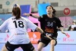 박조은골키퍼의눈부신선방과강경민의폭발적인득점력이어우러진SK슈가글라이더즈가삼척시청과의맞대결에서승리하며정규리그를20승1패라는압도적인성적으로마무리했다.SK슈가글라이더즈는13일오후12시50분,서울송파구올림픽공원핸드볼경기장에서열린신한SOL페이24-25핸드볼H리그여자부3라운드제7매치데이경기에서삼척시청을25-23으로꺾고,2년연속정규리그우승을차지했다.이날SK슈가글라이더즈는강경민이7골,유소정이6골,송지은이4골을넣으며공격을이끌었고,박조은골키퍼는14세이브로수문장역할을완벽히해내며MVP에선정됐다.사진SK슈가글라이더즈강경민이패스하고있다.사진제공=한국핸드볼연맹“지난경기패배로더는물러설수없었다”고밝힌박조은은“정규리그마지막경기인만큼팬들에게승리하는모습을보여드리고싶었다.이제챔피언결정전만남았고,이번엔우승못하면집에안간다는각오로뛰겠다”며강한의지를드러냈다.삼척시청은김보은,허유진,김지아가각각4골씩넣으며분전했고,박새영골키퍼도17세이브로대활약했지만,경기막판역전을허용하며아쉬운패배로시즌을마감했다.특히김보은은이날경기에서역대11번째통산800골,박새영은역대3번째통산2,000세이브라는대기록을동시에달성하며팀의에이스다운면모를과시했다.경기초반은삼척시청이우세했다.SK슈가글라이더즈의실책을틈타전지연과김보은이연속득점하며12-6까지격차를벌렸다.그러나강경민의연속골과박조은의선방쇼가터지며SK는전반막판부터분위기를바꿨고,유소정의돌파로13-14까지따라붙으며전반을마무리했다.후반들어신다빈의골로14-14동점을만든SK는김수정과강경민의연속득점으로21-19역전에성공했다.이후경기를주도하며삼척시청의추격을뿌리치고2골차승리를완성했다.사진경기MVPSK슈가글라이더즈박조은골키퍼,사진제공=한국핸드볼연맹이로써SK슈가글라이더즈는정규리그를20승1패,승점40점으로마무리하며다시한번최강자임을입증했고,삼척시청은14승1무6패(승점29점)로준우승을차지했다.한편,신한SOL페이24-25핸드볼H리그정규리그는13일막을내리고,포스트시즌은남자부17일,여자부는19일부터시작된다.남자부는2위SK호크스가1차전에서이기면21일부터열리는챔피언결정전에직행하고,3위하남시청이이기면19일플레이오프2차전에서승리한팀이챔피언결정전에오른다.두산이10연패를노리는남자부챔피언결정전은21일부터3전2선승제로열린다.여자부는19일부터3위경남개발공사와4위부산시설공단의준플레이오프가열리고,승리한팀이21일2위삼척시청과플레이오프에서맞붙는다.SK슈가글라이더즈가2연패를노리는여자부챔피언결정전은24일부터3전2선승제로열린다.[서울송파=김용필MK스포츠기자]