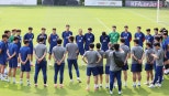 8일파주국가대표트레이닝센터(NFC)에서북중미월드컵예선최종전을앞둔축구국가대표팀선수들이홍명보감독의지시를듣고있다./연합뉴스[앵커]11회연속월드컵본선진출에성공한우리대표팀이훈련모습을공개했습니다.22세이하팀에서배준호선수를호출하며젊은선수들간본격적인경쟁체제에돌입했습니다.윤재민기자입니다.[리포트]이라크원정에서2-0승리를거둔축구대표팀이이틀뒤쿠웨이트와의조별예선최종전을앞두고공개훈련을진행했습니다.쐐기골을기록한오현규는대표팀최전방자리에자신감을드러냈습니다.오현규/축구국가대표팀공격수"감독님이나코칭스태프분들한테도인정받을자신있고,제가가진것을그냥보여드린다면항상좋은모습을…."컨디션회복중인손흥민도훈련에참여했고,22세이하대표팀에서경기를소화한배준호도합류했습니다.본선진출을확정했기때문에내년에진행되는본선무대에집중하는모습입니다.홍명보/축구국가대표팀감독(지난6일)"내년에월드컵에출전가능한젊은선수들,그런선수들을한번시험할수있는기회는그리많지않기때문에…."홍명보감독이젊은선수들을기용하겠다고공언한만큼,월드컵까지남은1년동안치열한경쟁을뚫어야세대교체의주인공이될수있습니다.전진우가데뷔전에서도움을기록하며먼저눈도장을찍었지만,같은자리에서뛰는양민혁과배준호의기세도만만치않습니다.본선무대를향한'영건'들의본격적인경쟁은이틀뒤저녁8시상암에서열리는쿠웨이트전부터시작됩니다.TV조선윤재민입니다.