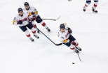 파상공세를벌이는한국남자아이스하키대표팀[국제아이스하키연맹홈페이지캡처.재판매및DB금지](서울=연합뉴스)이대호기자=한국남자아이스하키대표팀이스페인을대파하고3연승을달렸다.김우재감독이이끄는한국대표팀은29일(한국시간)에스토니아탈린에서열린2025국제아이스하키연맹(IIHF)남자세계선수권대회디비전1그룹B(3부리그)스페인전에서공격포인트4개를올린안진휘의활약을앞세워9-3으로승리했다.앞서크로아티아,중국을제압한데이어스페인까지잡은한국은대회3연승으로디비전1그룹A(2부리그)승격에한걸음다가갔다.한국은에스토니아(5월1일),리투아니아(5월2일)전에서승리하면자력으로디비전1그룹B우승을차지하고승격할수있다.한국은1피리어드부터4골을몰아치며일찌감치대승을예고했다.1피리어드10분2초에김시환이오인교의어시스트를받아선제골을넣었고,12분50초에는이총민이홍정욱,안진휘의어시스트를골로연결했다.곧이어파워플레이(상대의반칙으로인한수적우세)상황에서강윤석이추가골을넣었고,불과22초만에안진휘가다시골을터트려4-0까지점수가벌어졌다.2피리어드들어한국이김원준과강민완의골을앞세워6-1로앞서가자스페인은골리를빼고총공세를가하는엠티넷작전을들고나왔다.스페인의파상공세를침착하게막은한국은이총민과홍정욱의연속골로8-1까지달아나사실상승리에쐐기를박았다.3피리어드한국은2골을내줬으나김상엽이9번째축포를터트렸다.한국은안진휘가1골3어시스트로4개의공격포인트를기록한가운데이총민은2골1어시스트로그뒤를받쳤다[email protected]