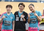 신유빈(오른쪽),유한나가석은미감독과포즈를취하고있다.2025.5.20.사진공동취재단신유빈,유한나가22일카타르도하루사일아레나에서열린2025국제탁구연맹(ITTF)세계선수권대회여자복식8강일본오도사츠키-요코이사쿠라와경기승리후환호하고있다.2025.5.22.사진공동취재단[스포츠조선전영지기자]'한국여자복식의미래'신유빈(대한항공)-유한나(포스코인터내셔널)조가세계선수권동메달을확정지었다.신유빈-유한나조는25일(한국시각)카타르도하루사일스포츠아레나에서열린2025년국제탁구연맹(ITTF)세계선수권여자복식4강에서'유럽최강조'베르나데트쇠츠(루마니아)-소피아폴카노바(오스트리아)조에풀게임접전끝에2대3으로패했다.8강에서'세계1위'일본조오도사쓰키-요코이사쿠라를3대1로돌려세우며세계선수권2연속메달을확정지은신유빈은이어내친김에2연속결승행에도전했었다.2023년더반세계선수권에서전지희와함께30년만의여자탁구세계대회은메달을되찾아왔던바,이번엔주니어시절손발을맞췄던뉴파트너유한나와함께2연속결승행에도전했다.신유빈(오른쪽),유한나사진공동취재단1게임을5-11로내줬지만2게임을11-8로가져왔고3게임을8-11로내줬지만4게임을11-9로다시가져오며일진일퇴팽팽한승부를가져갔다.결국승부는마지막5게임에서갈렸다.초반리드를잡았고시소게임을이어갔지만6-6동점을내줬고이후잇단리시브범실로6-9,3점차로밀렸다.'톱랭커'신유빈의날선공격이성공하며7-9까지쫓아갔고매치포인트를내준상황에서도끝까지포기하지않았다.신유빈의강력한포어핸드,백핸드공격이잇달아작렬하며9-10까지추격했다.그러나마지막유한나의리시브가흔들렸다.9-11로패했다.게임스코어2대3으로아깝게결승행이불발됐다.쇠츠(세계12위)와폴카노바(세계15위)는국적은다른유럽연합팀이지만각각자국의톱랭커이자세계무대,손발을맞춘경험이많은베테랑이다.유한나의첫세계선수권인만큼하루아침의결승행은녹록지않은미션이었다.하지만신유빈-유한나조는'백전노장'전지희의은퇴후결성한지두달만에나선세계선수권에서4강행,동메달을확정지으며향후성장가능성에기대를갖게했다.