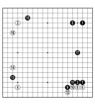 패자1회전○박정환9단●김명훈9단초점1(1~17)GS칼텍스배가30회를치르고있다.우승상금7000만원은한국대회우승상금규모가운데1위였던때가더많았다.올해는500만원차이로2위.준우승상금3000만원역시다른대회에따라잡히기는했어도1위를지켰다.상금이늘어나는것은선수들에게좋은일이다.대회30년역사를조금돌아보면처음엔16강토너먼트에이어결승전은5번기로열렸다.우승한선수가다음대회본선에나오지않고결승무대에올라본선에서도전자가뽑히는걸기다린적도있었다.그뒤달라져서지난해까지본선24강으로토너먼트를벌였다.29회동안한차례예외없이결승무대에서3승을따내야우승했다.올해결승전에서는먼저2승으로우승한다.결승전판수가줄었으나그아래경기는늘어났다.16강토너먼트란울타리속에서패자조가있다.한판을지지않은사람과한번을진다음계속이긴사람이결승에서만난다.한국2위박정환은16강에서4단으로가장단이낮은김민석과겨뤄좋은형세에서뒤집기를당했다.7위김명훈은15위김진휘와끝내기싸움에서밀렸다.요즘은백6처럼귀로빨리들어간다.흑13과15처럼귀에걸어간뒤손을빼는흐름도흔하다.13한점이쉬이잡히는돌이아니라는걸믿는다.<참고도>흑1을빨리둘때는백2와6으로귀를굳히는것을참고지켜봐야한다.[김영환9단]