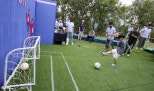 19일서울월드컵경기장서드림패럴림픽[서울=뉴시스]시각장애인축구종목체험.(사진=대한장애인체육회제공)[서울=뉴시스]안경남기자=대한장애인체육회는오는20일제45회장애인의날을맞이해19일서울월드컵경기장에서장애인스포츠체험행사를개최한다.대한장애인체육회는프로축구K리그1FC서울,프로스펙스와협력해장애인,비장애인누구나함께어우러질수있는축제를마련했다.'드림패럴림픽'은보치아,시각축구,쇼다운,휠체어사격(레이저)등장애인스포츠를직접즐길수있는행사다.장애인스포츠를두종목이상참여하는등3개이상스탬프를모은참가자에겐대한장애인체육회마스코드반다비키링을선착순으로준다.또반다비인형탈이나포토존에서찍은사진을소셜미디어(SNS)에올리는참가자엔프로스펙스티셔츠도선착순으로증정한다.이날서울월드컵경기장에서열리는서울과광주FC의하나은행K리그120259라운드경기에선2024파리패럴림픽선수들이매치볼전달과시축에나선다.파리패럴림픽기수였던카누최용범이매치볼을건네고,시축은도쿄와파리패럴림픽태권도동메달리스트주정훈,최초로패럴림픽트라이애슬론에출전한김황태,골볼여자대표팀주장김희진이맡는다.