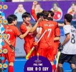 6대3승···6일방글라데시와17~20위순위전한국선수들이이집트전승리후기뻐하고있다.FIH인스타그램캡처[서울경제]한국주니어남자하키대표팀이이집트를제압하고월드컵첫승을올렸다.한국은4일(현지시간)인도마두라이에서열린제14회국제하키연맹(FIH)남자주니어(21세이하)월드컵대회6일째17~24위전에서이집트를6대3으로제압했다.이로써한국은대회첫승을따냈다.이번대회조별리그에서1무2패에그쳐24개참가국가운데17~24위전으로밀려난한국의첫승리다.이날이민혁(한국체대)이혼자4골을터뜨리며팀승리를이끌었고송정섭(한국체대)과박서원(한국체대)이1골씩넣으며힘을보탰다.한국의다음경기는6일열리는방글라데시와의17~20위순위전이다.한국은직전대회인2023년에는16개참가국가운데13위에그친바있다.