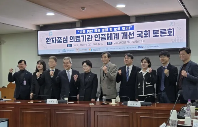 오는11월부터중소병원참여위한기본인증제조사분야별인증제도함께추진...수술실·중환자실부서단위인증과뇌졸중등전문센터인증적정보상기전마련·분절적평가주체개선·의료기관부담완화과제[의학신문·일간보사=이재원기자]간소화된핵심지표만담은'기본인증제'도입으로중소병원의의료기관인증참여가기대되는가운데,의료기관인증원은의료기관특성과전문성을반영할분야별인증제도도추진한다.이러한가운데,인센티브와적정보상기전마련,의료기관부담완화등이추가과제로떠올랐다.환자중심의료기관인증체계개선국회토론회가27일국회의원회관에서열렸다.의료기관평가인증원과중앙환자안전센터,조국혁신당김선민의원이공동주최한'환자중심의료기관인증체계개선을위한국회토론회'가27일국회의원회관제9간담회의실에서열렸다.발제에나선서희정인증원사업혁신센터장은기본인증제도입을비롯해환자들의체감할수있는동시에의료기관의자율적참여와전문성을반영할의료기관인증제개편방향에대해설명했다.서센터장은"2025년12월말기준으로상급종합병원과종합병원을제외한일반병원급의료기관의인증률은8.4%에불과하다"며"상급종합병원은지정요건과연계돼100%,종합병원은69%수준인반면병원급의료기관은인증참여가극히저조한상황"이라고밝혔다.반면의무인증대상인요양병원은인증률이99.7%에달한다.서희정인증원사업혁신센터장.이같은구조속에서인증원은인증제개편방향을두갈래로설정했다.서센터장은"환자안전사각지대에놓인중소의료기관을인증체계로유입시키기위한'기본인증제'를급성기병원인증으로가는마중물로운영할계획"이라며"또하나는의료기관의특성과전문성을반영할수있는'분야별인증제'"라고말했다.'분야별인증제'는기존종별인증과달리기본인증을축으로수술실·분만실·중환자실등부서단위인증과뇌졸중센터등전문영역인증을결합하는방식이다.그는"국민들이수술을잘하는병원이나뇌졸중치료역량을갖춘의료기관을인증을통해직관적으로선택할수있도록세부전문분야인증을고도화할것"이라고밝혔다.기본인증제는지난해말보건복지부로부터실시가확정된사안이다.중소병원을대상으로약1년간준비기간을거쳐2026년11월시행을목표하고있다.기본인증제는조사부담도대폭줄였다.서센터장은"조사항목수는크게축소됐지만환자안전과직결되는핵심기준은유지했다"며"인력이나시설투입부담이크지않더라도실제수행중심으로평가할수있도록설계했다"고설명했다.조사위원수와조사기간도줄이는대신,기존의'압박형평가'보다는컨설팅중심의조사를지향한다는방침이다.인증원은제도활성화를위해정부지원도연계한다.올해약50개의료기관을대상으로무료컨설팅을제공하고,2026년11월부터는기본인증제에대한본격적인조사에착수할예정이다.아울러기존인증과의혼선을막기위해기본인증전용인증마크를도입하고,이를위한의료법시행규칙개정도진행중이다.서센터장은"인증제활성화를위해서는정책·제도적연계와인센티브가필수적"이라며"인증의의미를국민이쉽게이해할수있도록대국민커뮤니케이션을강화하고,환자경험중심의메시지로인증제를전환해나가겠다"고말했다.이어진토론에서는인증원의인증평가개편방향에공감하면서도,추가적으로개선이필요한사안에대한제언이이어졌다.박진식대한병원협회정책위원장은"인증원에서추진중인기본인증제도입과이에따른지원책마련,분야별인증제도입방향에전적으로공감한다"며"인증제도가한단계도약하기위해서는국민,의료기관,제도전반을함께고려해야한다"고밝혔다.박위원장은낮은인증률의원인을의료기관운영현실에서찾았다.그는"인증을받는다는것은운영이'더쉬워지는것'이아니라'표준에맞게제대로하는것'으로전환하는과정"이라며"그부담을잘아는의료기관장일수록인증에쉽게도전하지못하는현실이있다"고덧붙였다.왼쪽부터김덕경한국의료질향상학회총무이사,박진식병원협회정책위원장박위원장은특히적절한보상을통해참여율을높여야한다고강조했다.그는"현재는인증을받기위해투입해야하는비용과노력이매우큰반면,인증을통해얻는보상은의료기관의지속가능성을높일만큼충분하지않다"며"환자증가나일부수가보상만으로는인증참여를유도하기어렵다"고지적했다.해외사례도언급했다.박위원장은"미국의JCI인증은자율인증이지만,인증을받지않으면보험사와계약자체가불가능해사실상의료기관운영이어렵다"며"우리나라와마찬가지로국가보험체계를운영하는일본·대만도자율인증제이지만,대만의인증률은95%에달한다"고말했다.그는"대만은급성기병원이인증을받지않으면주요가산이전혀없는상태로운영해야하기때문에인증참여가사실상필수"라고설명했다.김덕경한국의료질향상학회총무이사도가장시급한문제로병원급의료기관의낮은인증참여율과인센티브마련을꼽았다.김총무이사는"병원급의료기관의인증률은최근기준으로7%대에불과하다"며"상급종합병원에비해병원급의료기관의환자안전사고발생위험이높을것으로예상되는상황에서,인증참여도가낮다는것은곧안전사고위험이더크다는현실을의미한다"고말했다.이어"이같은문제