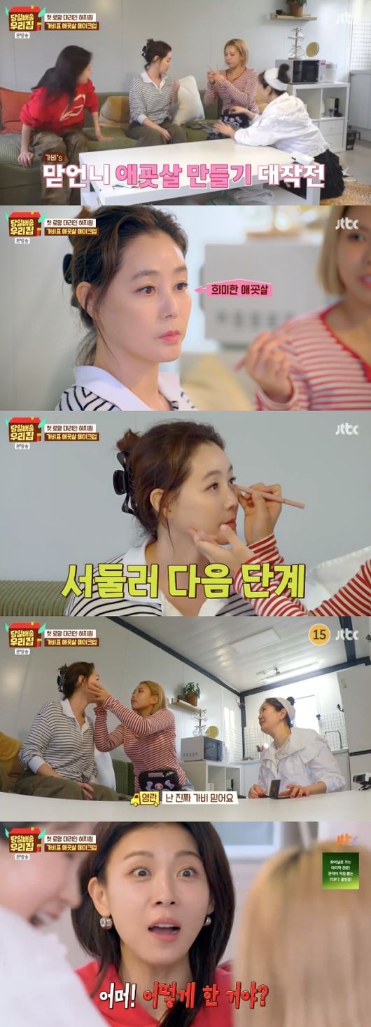 방송시청후작성된리뷰기사입니다.[OSEN=임혜영기자]김성령이외모고민을털어놨다.16일첫방송된JTBC‘당일배송우리집’에는김성령,하지원,장영란,가비가첫배송트럭을맞이하는모습이그려졌다.드디어집안으로들어가게된이들은확달라진집안풍경에“말도안된다”라며환호했다.짐정리를하면서가비는멤버들앞에서자신의화장품가방을공개했다.김성령은“애굣살이아예없다”라며외모고민을털어놨고가비는화장으로김성령의얼굴을바꾸기시작했다.애굣살메이크업을마친김성령.이를본멤버들은“어떻게한거냐”,“신기하다”,“생겼다”라고말했고김성령도마음에든다며만족스러워했다.장영란은“10살은어려보인다”라고부러워했다./[email protected][사진]JTBC‘당일배송우리집’Copyright©OSEN.무단전재및재배포금지.