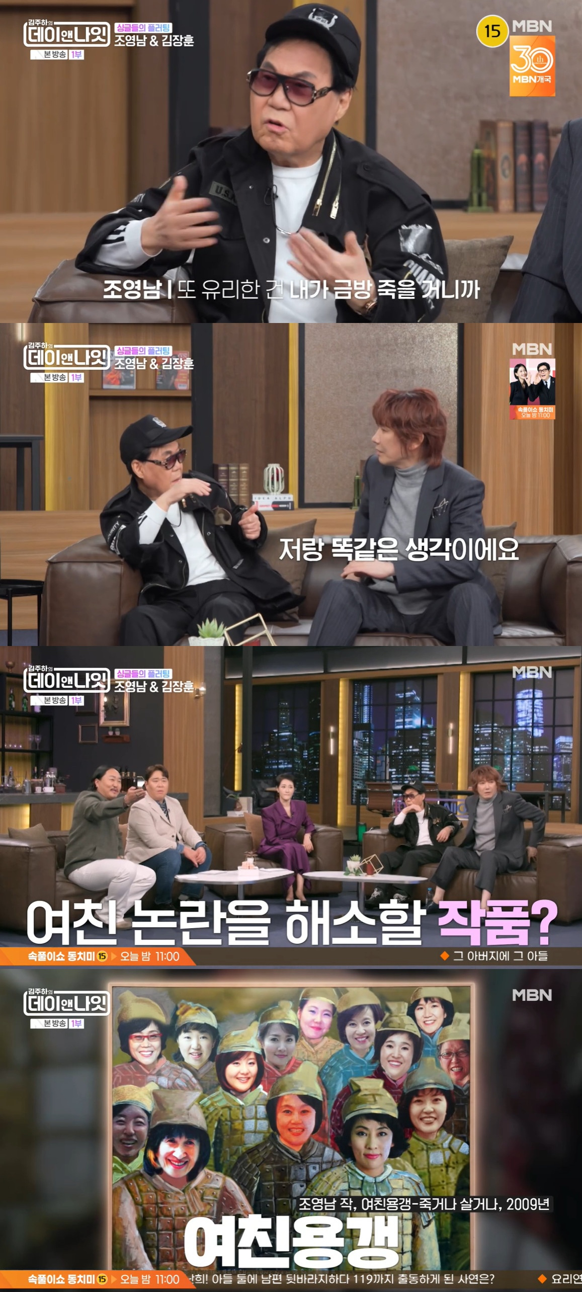 [스타뉴스|안윤지기자]/사진=MBN'김주하의데이앤나잇'방송캡처'데이앤나잇'가수조영남이시작부터실언을뱉었다.6일방송된MBN'김주하의데이앤나잇'(이하'데이앤나잇')에서는조영남,김장훈이게스트로출연했다.김주하는"두분은화려한싱글아니냐.외로운적있냐,없냐"라고물었다.김장훈은없다고말했지만조영남은"외로운적있다.여친하고는관계없다.여자친구가많은비결을물어봐라.스킨십을안하면된다.스킨십하려고시도한적은없다"라며"난플라토닉러브다"라고했다.그는"스킨십이란단어때문에여자친구란단어가퇴색됐다.진짜여자인친구다"라고정의했다.지인인박미선,송은이,이경실,이성미등이담긴그의작품인'여친용갱'에대해"진시황은자기가죽은다음에자기를지켜줄남자모형수천개만들었다.난남자필요없다.여자친구들이날지켜주길바랐다"라고털어놨다.한편'데이앤나잇'은매주토요일오후9시40분에방송된다.안윤지기자[email protected]©스타뉴스&starnewskorea.com,무단전재및재배포금지