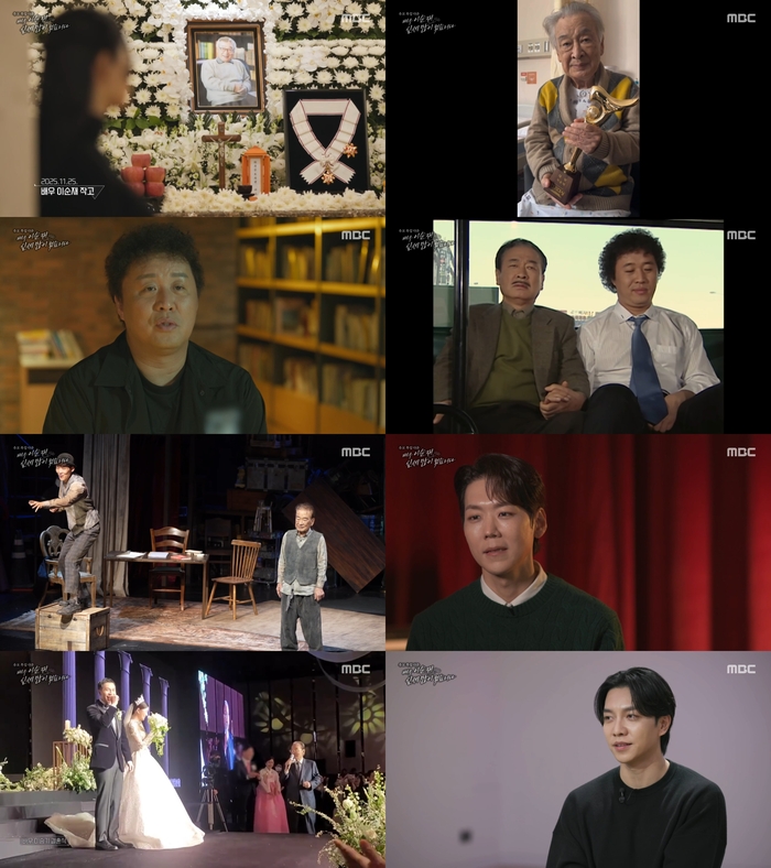 ‘배우이순재,신세많이졌습니다’.사진IMBC‘배우이순재,신세많이졌습니다’방송캡처배우고(故)이순재와호흡을맞춘후배들이고인을추억했다.28일방송된MBC‘배우이순재,신세많이졌습니다’에서는이순재를기리는후배들의모습이그려졌다.이날방송에서소속사대표이승희는“이건아는사람들이별로없을거다.선생님의왼쪽눈이안보이셨다.오른쪽눈도100%다보이는게아니셨다.그런데도선생님은그전이랑똑같이연기훈련을하시고안보이니까더해야한다고하셨다”고회상했다.당시드라마‘개소리’를촬영중이던이순재는눈이보이지않자이승희대표나매니저에게대본을읽어달라고부탁했다고.이승희대표는“읽어주는걸외우겠다고하셨다.그때참가슴아팠다”고눈시울을붉혔다.이승희대표는“마지막에연기대상을주셔서,선생님소원을풀어주신것같아서너무감사하다.그상을받고오셔서자랑하셨던게생각난다.‘야,무겁다’라고하셨는데‘무겁다’라는말에선생님의70년연기세월이녹아있다고생각한다”고이야기했다.이순재와드라마‘거침없이하이킥’을함께한정준하는“선생님은꼼꼼하게디테일을보시고메모하셨다.항상현장에서맞춰보자고하셨다.‘이런분도노력하고최선을다하는데나는대충대충한게아닌가’라는생각에그때부터열심히했다”고말했다.이순재와연극‘고도를기다리며를기다리며’를함께한카이는“선생님이관객들의반응과웃음에서큰에너지를얻으셔서‘무대에살아계시는걸정말사랑하시는구나’를느꼈다”고말했다.이어“선생님은‘관객들과의약속을꼭지키고싶다’라고계속반복하셨다.‘한번의무대가얼마나소중한지잘알고있기때문에나때문에피해를주고싶지않다’라고계속반복하셨다.1시간반정도의공연을마치시고바로그길로응급실에가셨다”고했다.이순재와드라마‘더킹투하츠’를함께한이승기는이다인과의결혼식당시이순재에게주례를부탁하기도했다.이에대해이승기는“내인생에서가장존경스러운어른이이순재선생님이다.후배들을대할때의마음이따뜻하시다.‘그따뜻한어른이덕담을해주면어떨까’라는생각에부탁드렸다”고이야기했다.드라마‘이산’,예능‘꽃보다할배’등에서이순재와돈독한연을맺은이서진은이순재의생전모습을담담한목소리로전했다.그러나말미에“선생님,그동안신세많이졌습니다.고맙습니다.이번여행은함께하지못해죄송합니다”라며눈물을터뜨려먹먹함을자아냈다.[이세빈스타투데이객원기자]Copyright©스타투데이.무단전재,재배포및AI학습이용금지