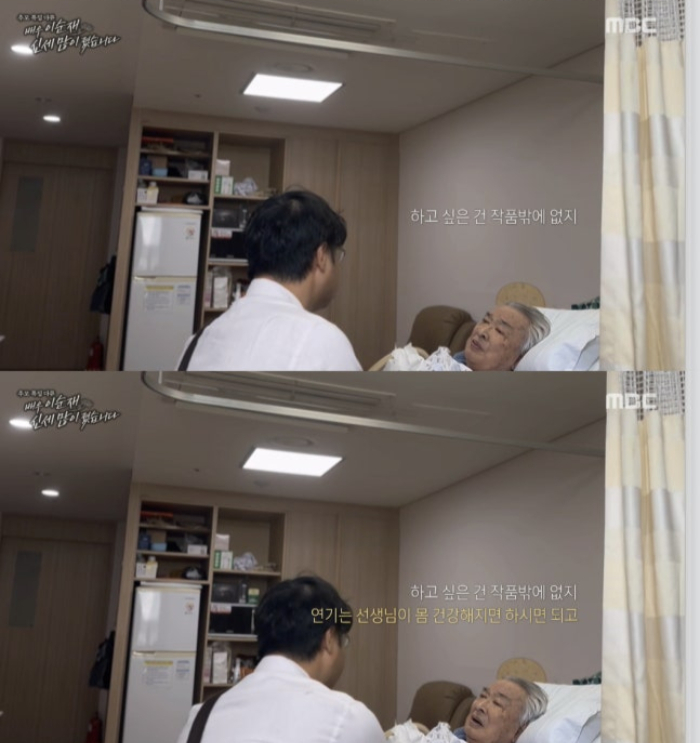 원로배우고(故)이순재가생전마지막까지작품에대한열정을불태운사실이뒤늦게전해졌다./사진=MBC다큐멘터리'배우이순재,신세많이졌습니다'원로배우고(故)이순재가생전마지막까지작품에대한열정을불태운사실이뒤늦게전해졌다.MBC다큐멘터리'배우이순재,신세많이졌습니다'는28일방송에서이순재의마지막투병생활을공개했다.소속사이승희대표는지난5월25일대선을앞두고병원에입원한이순재를찾았다.이순재는기력이현저히약해진상태에서도"투표에나가고싶다"는의사를내비쳤지만,이대표는"그런생각하지마시고선생님몸만생각하시라"며그를말렸다.이순재는병상에서도오로지작품생각뿐이었다.이대표가"건강해지시면하시고싶은것없냐"고묻자,이순재는"하고싶은건작품밖에없다"고했다.이에이대표는"작품은몸건강해지시면하면되고,연기말고하고싶은거없냐.(작품은)이제몸회복하시고또천천히준비하시면될것같아요.마음편하게잡수고계시라"고다독였다./사진=MBC다큐멘터리'배우이순재,신세많이졌습니다'이대표는이순재가이미오래전작품촬영이어려울만큼건강이쇠약해진상태였다고했다.유작이된KBS2드라마'개소리'촬영당시이미왼쪽눈이실명됐고,오른쪽눈도100%보이는건아니었다고이대표는전했다.이대표는"(이순재는)그런데도더해야한다고하셨다.안보이니까.제일가슴아팠던게,안보이시니까저나매니저에게큰소리로읽어달라고했다.읽어주면외우겠다고.그때참가슴이아팠다"고떠올렸다.'개소리'에서이순재와호흡을맞춘배우송은숙은"안보이지만부족한부분을노력으로채우시는거다.선생님이저한테도노력과도전이없는배우는배우가아니라고하셨다.선생님은하실수있다는자신감이있으셨던것같다.잘해내셨지않나"라고말했다.이순재는지난25일새벽91세를일기로타계했다.고인은1956년연극'지평선너머'로데뷔해지난해말까지국내최고령배우로활동했다.출연작은드라마약175편,영화150여편,연극약100여편에이른다.정부는이순재에게금관문화훈장(1등급)을추서했다.최휘영문화체육관광부장관은25일오후이순재의빈소가마련된서울송파구서울아산병원장례식장을찾아고인에게추서된금관문화훈장을유족에게전달했다.전형주기자[email protected]©머니투데이&mt.co.kr.무단전재및재배포,AI학습이용금지.