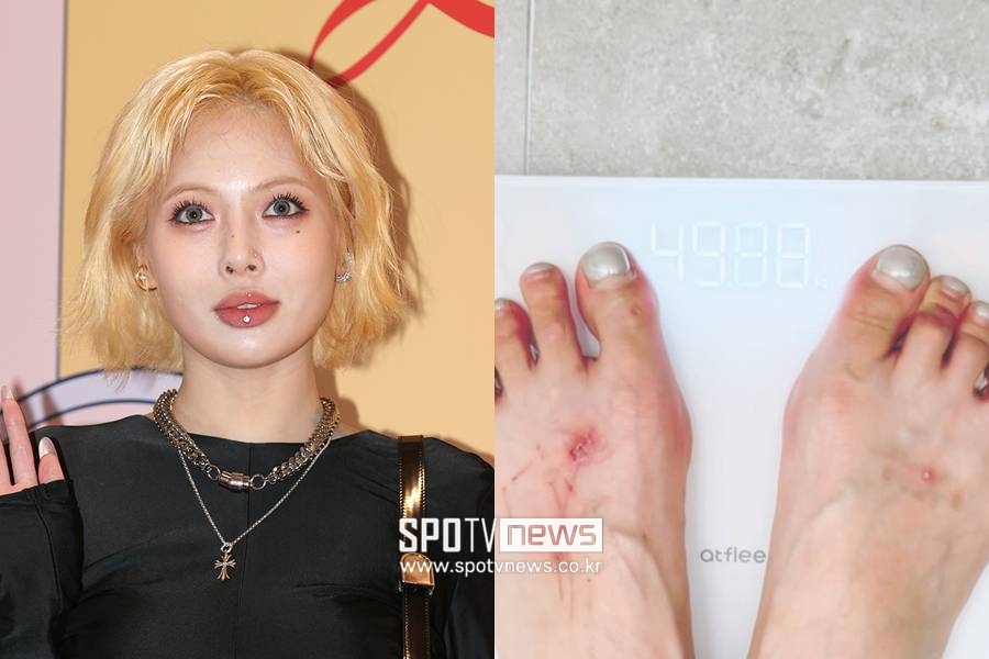 ▲현아(왼쪽),현아가공개한사진.ⓒ곽혜미기자,현아SNS[스포티비뉴스=정혜원기자]가수현아가다이어트중인근황을공개했다.현아는4일개인계정에"50끝에서앞자리바꾸기까지참힘들다.아직멀었구나"라며"그동안얼마나먹었던거니김현아.현아야아아"라는글을게재했다.이와함께현아는체중계인증샷을공개했다.체중계속현아의몸무게는49kg이다.현아가직접50kg끝자리에서앞자리까지바꿨다고밝힌만큼,그는약10kg가량을감량한것으로보인다.최근현아는용준형과결혼후체중이오른모습이공개개된뒤연이어임신설에휩싸였다.그는임신설이불거질때마다"사실이아니다"라고입장을밝혔다.현아도이를의식한듯지난4일에는자신의SNS에과거자신의모습을공개하며"현아야많이먹었잖아.정신차리고빡세게다이어트해보자.뼈말라좋아했잖아.다시해보자"라는글을남기기도했다.그로부터약20일만에공개된사진에서40kg대몸무게를인증한것.특히공개된사진은현아의발등에난여러상처로시선을모았다.발등에도남겼던문신을지우고있는흔적으로보인다.현아는앞서이용진유튜브'용타로'에출연해모친의부탁으로1년째문신을제거하고있다고밝혔다.현아가급감한체중을인증하자많은팬들은"지금도충분히예쁘다","무리하지말아달라","건강이최우선이다"라는반응을보였다.한편현아는지난해10월그룹하이라이트출신가수용준형과결혼했다.<저작권자ⓒSPOTVNEWS.무단전재및재배포금지>Copyright©스포티비뉴스.무단전재및재배포금지.