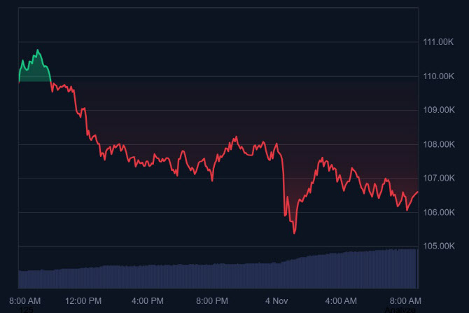 비트코인10만6000달러대로하락"고래투자자18억달러규모비트매도"이더리움등알트낙폭더욱커[이데일리안유리기자]비트코인가격이10만6000달러대로하락한가운데,알트코인가격도일제히하락했다.11월4일오전8시비트코인시세(사진=코인마켓캡갈무리)글로벌가상자산시황중계플랫폼코인마켓캡에따르면4일오전8시33분기준비트코인(BTC)가격은24시간전대비3.4%하락한10만6469달러를기록했다.일주일전과비교하면6.6%하락한가격이다.이날가상자산시장의하락세는제롬파월연방준비제도(연준·Fed)의장의매파발언영향속에고래투자자의매도가이어졌기때문으로풀이된다.3일(미현지시간)가상자산전문외신AMBCRYPTO에따르면비트코인을장기간보유했던고래투자자들이18억달러이상의비트코인을매도했다.알트코인가격은낙폭이더컸다.같은시간이더리움(ETH)은24시간전대비7.36%하락한3594달러에거래됐다.일주일전대비12.7%하락했다.리플(XRP)은24시간전대비8.57%하락한2.3달러로,솔라나(SOL)는24시간전대비11.19%떨어진165.달러에거래됐다.국내가상자산거래소업비트에서는비트코인이소폭하락세를보였다.업비트에서비트코인은24시간전보다3.59%하락한1억5823만4000원에거래됐다.빗썸에서는비트코인이24시간전대비1.44%하락한1억5855만6000원을기록했다.한편,코인마켓캡의‘가상자산공포및탐욕지수’에따른가상자산시장심리단계는36점으로‘공포’단계를기록했다.이지수는값이제로(0)에가까워지면시장이극도의공포상태로투자자들이과매도를하며,100에가까워지면시장이탐욕에빠져시장조정가능성이있음을뜻한다.안유리([email protected])Copyright©이데일리.무단전재및재배포금지.