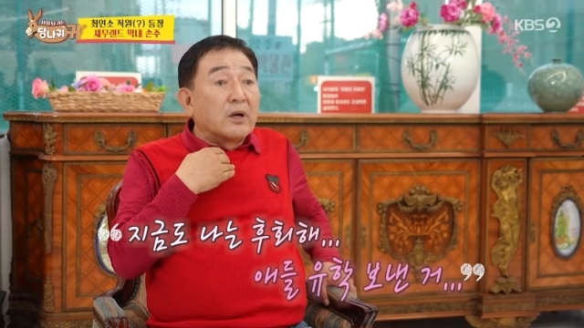 KBS2TV‘사장님귀는당나귀귀’캡처KBS2TV‘사장님귀는당나귀귀’캡처[뉴스엔서유나기자]배우임채무가딸을15년간유학보낸과거를후회했다.11월2일방송된KBS2TV예능'사장님귀는당나귀귀'(이하'사당귀')329회에서는임채무가딸임고운씨,손자심지원군과시간을보냈다.이날사입을하러나갔다가외식을하게된임고운씨는"야외에서진짜오랜만에먹는다"며자신의아들에게"지금은할아버지가우리랑밥도먹고하지만엄마가어렸을때는얼굴도볼수없었다.밥먹을시간도없고,엄마학교졸업식사진에한번도할아버지가나온적없다.바쁘셔서한번도못오셨다"고말했다.임고운씨는"어릴때아빠가너무바쁘시니까함께할시간이정말없었다.다른친구들은'주말에부모님과백화점갔다,놀이공원갔다'고얘기하는데전그런추억이없다.아빠를볼수있는날이그렇게많지않았다.아빠는제가자는새벽에들어오고하시니까,아빠랑같이저녁먹는보통의일상을해본적없다"고털어놓았다.심지어추억도쌓지못한채임채무의권유로외국유학까지떠나게됐다고.임채무는이에대해"지금도유학보낸거난후회한다.그때는(유학이)부모의최고의자긍심이었다.지금생각하니까절대해서는안될일이더라.얘와추억거리가없더라.부모와자식간에정이없다"며후회의감정을고백했다.임채무는딸앞에서손자에게"할아버지도네엄마한테미안한건,좋은곳에데려가고추억거리를만들지못한거다.바캉스도못가고해외여행도못가고.일이너무바쁘다보니까"라고밝히며아빠로서소홀했던과거를인정했다.뉴스엔서유나stranger77@기사제보및보도자료[email protected]ⓒ뉴스엔.무단전재&재배포금지Copyright©뉴스엔.무단전재및재배포금지.