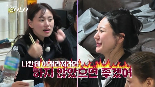 ENA,SBSPlus‘나는SOLO’ENA,SBSPlus‘나는SOLO’ENA,SBSPlus‘나는SOLO’[뉴스엔유경상기자]“영수와의시간을한마디로정의하자면농락당했다?”영수의여장에서영숙이벗어난가운데정숙과현숙의무서운대격돌이예고됐다.10월22일방송된ENA,SBSPlus‘나는SOLO’에서는돌싱특집28기영수가애매한말로상황을정리하지못하고더복잡하게만들었다.정숙은1순위영수에게자신이화났는데왜달래주러오지않았냐며2순위영숙과자신의차이가크지않다는말을들었다고했다.정숙은영수의어장관리에불만을드러내며확실한마음을궁금해했고,영수는그날오후까지확실한마음을정하겠다고했다.정숙은“슬프게하지마요.약속해”라며약속을받았다.이어영수는현숙에게대화를청했고,현숙이“난힘든사람이다.넌멋지잖아.다른사람만나면좋겠다”고말하자영수는“나그렇게대단한사람아니다”며“최종선택은현숙님마음이고마음에누가있다면적극적으로표현하면좋겠다”고애매하게말해여지를줬다.현숙은영수를포기했다가다시희망을품었다.영수는상황을정리하겠다던정숙과의약속과달리오히려현숙에게여지를줬고,영숙과도대화를나눌타이밍을기다렸지만,영숙이모친과전화통화하며눈물을쏟는바람에차마대화를청하지도못했다.상철은정숙에게대화를청했고,정숙이윷놀이에걸려있던손잡고산책하기미션의영향때문이아닌지묻자영향이있다고인정했다.상철은정숙과순자에게관심이있다고했고,정숙은처음부터영수에게올인하고있었다고선을그었다.영호는옥순에게정희가완전히정리됐다고말해확신의커플을향해갔다.여자들의선택으로데이트가이뤄졌고확신의커플인옥순과영호,정희와광수가일대일데이트를하게됐다.영자는영철을알아보기위해선택했다.영수는또영숙과현숙의선택을받으며다대일데이트를하게됐다.정숙은영수의다대일데이트를확신하며상철을택했고,순자도상철을택해다대일데이트를하게됐다.영식과경수가고독정식을먹게됐다.뒤이어공개된데이트는영수의다대일데이트.영숙은직전에정숙을통해영수가아무에게나여지를주면서행실이좋지않다는말을듣고그런모습을본적이없다며“내가사람보는눈이없나?”라고놀랐던상황.그말을듣고영수에게의심을품은영숙은“인터뷰때말한한사람이여기왔냐”고단도직입적으로물었다.영수는말을돌리다가영숙의질문이계속되자“안왔다”고답했다.현숙은“안왔냐”며당황해표정부터달라졌다.영수는“선택한건정숙이었다”며“현숙이와서놀랐다.버림받았다고생각했다”고말했다.현숙은영수에게“그렇게생각했냐.내가오늘더보여주겠다.오늘이자리를통해서진전이있을수있냐.가능성이있냐.그럼술이들어갈것같다”고말했고,영수는계속여지를주는말을해서현숙의기분을풀어줬다.영숙은정숙에게들었던여지를주는영수의행실을직접보고혼란에빠졌다.급기야영숙은영수와이동하던길에말다툼을벌이기도했다.영수는“오늘현숙에게새로운모습을봤다.눈치보고분위기파악하고어제행동에미안해하고.오늘현숙이없으면제마음이힘들고불편했을것같다”며현숙에게호감을드러냈고,영숙은“영수와시간을한마디로정의하자면농락당했다?광수에대한마음을내려놨는데.농락당한것같은느낌이다.그래서정말완벽하게정리됐다”고말했다.이어진예고편에서는현숙과정숙이영수를사이에두고기싸움을벌이는모습이그려졌다.현숙은정숙에게“(영수에게)살살해줘.욕많이했잖아”라고말했고,정숙은“나욕안했다.나한테이래라저래라하지마라”고응수했다.현숙은“짜증나더라.(정숙이영수를)자꾸건드려서”라고말했다.영숙은영식과경수를찾아가서대화를청하며새로운인연을찾으려애쓰는모습.여기에영수는현숙에게“정숙과기회가되면내일도대화할수있다”고말했고,현숙의표정이바로안좋아지는모습으로더한갈등을예고했다.(사진=ENA,SBSPlus‘나는SOLO’캡처)뉴스엔유경상yooks@기사제보및보도자료[email protected]ⓒ뉴스엔.무단전재&재배포금지Copyright©뉴스엔.무단전재및재배포금지.