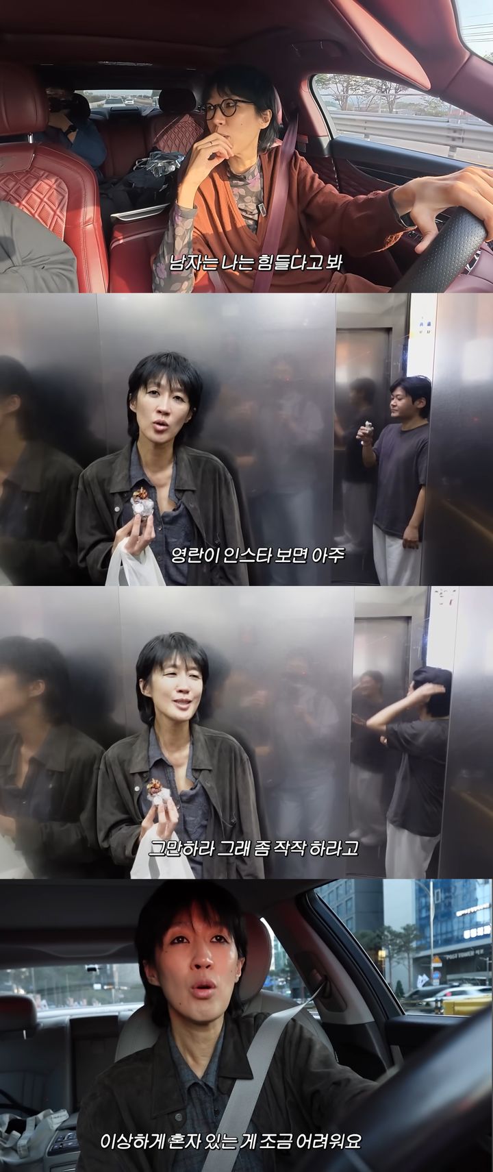 [서울=뉴시스]모델겸방송인홍진경이지난16일유튜브채널'공부왕찐천재홍진경'에올라온영상에서이혼후일상을공개했다.(사진=유튜브채널'공부왕찐천재홍진경'캡처)[email protected]*재판매및DB금지[서울=뉴시스]신지아인턴기자=모델겸방송인홍진경이혼자있는게어렵다고말했다.그는지난16일유튜브채널'공부왕찐천재홍진경'에올라온영상에서이혼후일상을공개했다.앞서홍진경은"故최진실묘지에사람들이오기전잠깐다녀오려고한다"며묘소를찾았다.이동중그는"오랜만에라디오방송을시작하겠다"며"댓글을읽어달라"고말했다.이어제작진은"'몇년째썸인건이해가안가는데한달안에결론지어야지'라고달았다"고말했다.홍진경은"저희한테이러지마시고상대에게얘기해라"라며"(몇년째썸은)남자는힘들다고본다"고답했다.이후그는한의원을찾았다.홍진경은"썰렁해죽겠는데장영란인스타보면화가치밀어오른다"며"소셜미디어보면맨날쪽쪽대더라"라고말했다.홍진경은"여행도혼자다니는걸좋아할정도로즐기는편인데요근래는혼자있는게좀어렵다.일이없는날엔빈시간을어떻게채워야될지모르겠다"고덧붙였다.한편그는지난2003년비연예인과결혼해2010년딸라엘을뒀다.홍진경은지난8월이혼을발표했다.☞공감언론뉴시스[email protected]©뉴시스.무단전재및재배포금지.