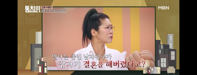 배우황석정이전남자친구와의황당했던경험을밝혔다./사진=MBN'동치미'방송화면갈무리배우황석정(47)이전남자친구의충격적인배신을폭로했다.교제중이던남성이몰래다른여성과결혼식을올렸다는것이다.11일방송된MBN토크예능'속풀이쇼동치미'에서는'결혼안한사람이승자다'라는주제로다음주방송이예고됐다.황석정은예고편에서"제가승자라고생각하지는않지만결코패자는아니다"라고입을열었다.이어"(남친이)다도망을간다.나랑만나는중인남자가몰래결혼한경우도있었다"고고백했다.그는"친구결혼식을다녀온다고했는데자기결혼식이었다"며황당했던경험을공개했다.황석정은오는13일오후8시30분방송되는KBS2TV'박원숙의같이삽시다'에서도"어느날(전남자친구가)양복을입고나타났는데알고보니그의결혼식이었다"며해당남성이세다리를걸치던바람둥이였음을폭로한다.서울대국악과출신인황석정은2001년영화'고양이를부탁해'로데뷔했다.이후영화'살인자의기억법''그것만이내세상',드라마'미생''친애하는판사님께'등에출연하며연기력을인정받았다.해당예고편에는배우홍진희도등장했다.그는"부산에서촬영을하는데어떤아주머니가'연예인누구랑우리모텔에와서자고갔잖아'라고했다"며"스태프들이다뜨악해서날쳐다보는데아무말도못했다"고억울했던경험을회상했다.황정원기자[email protected]©머니S&moneys.co.kr,무단전재및재배포금지
