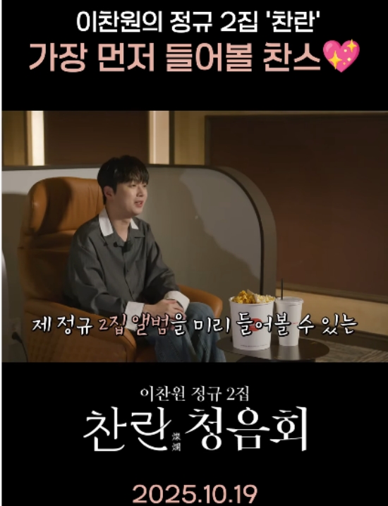 (엑스포츠뉴스이정범기자)이찬원이정규2집청음회를개최한다.이찬원은10월19일전국롯데시네마32개지점에서정규2집'찬란(燦爛)'청음회를개최한다.이번청음회는앨범수록곡을최초로공개하는행사로,앨범이정식공개되는10월20일하루전에열린다.총38분간열리는청음회에서는앨범수록곡을들어볼수있으며,작업비하인드,곡소개,인터뷰영상도함께상영된다.또한,상영직후에는타이틀곡'오늘은왠지'의뮤직비디오도최초공개될예정이다.이찬원은"오랜만에정규앨범으로돌아오는만큼열심히준비한제노래를찬스여러분들께하루라도먼저들려드리고싶었다"라며,"여러분들도많이좋아해주시고또사랑해주셨으면좋겠다"라고전했다.한편,이번청음회관객에게는'시그니처무비티켓스페셜'이증정되며,이찬원의사진이들어있는팝콘세트인'찬스콤보'상품도한정판매된다.청음회는10월14일부터롯데시네마홈페이지와앱을통해예매할수있다.사진=티엔엔터테인먼트,롯데시네마이정범기자[email protected]©엑스포츠뉴스.무단전재및재배포금지.
