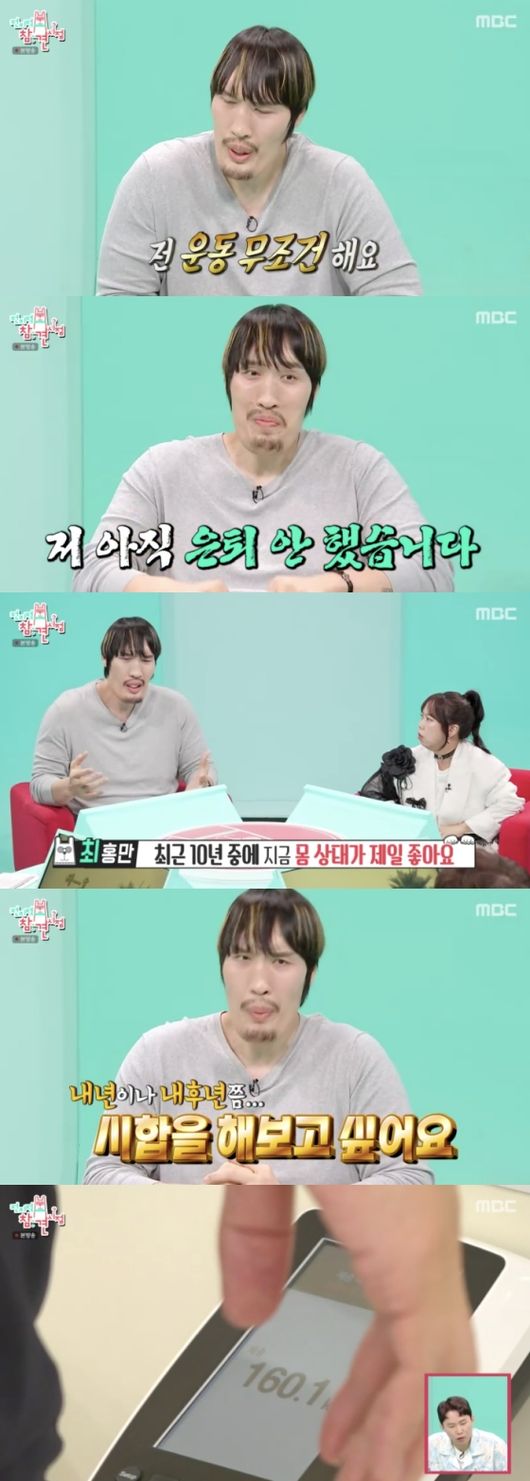 방송시청후작성된리뷰기사입니다.[OSEN=임혜영기자]최홍만이최상의몸상태라고밝혔다.11일방송된MBC‘전지적참견시점’(이하전참시)에는최홍만과‘장사천재조사장’조서형셰프가출연했다.이날방송에서최홍만의제주생활이공개되었다.떡집아르바이트를마친최홍만은운동을하러나섰다.최홍만은“무조건운동을한다.안하면잠을잘수가없다.저아직은퇴안했다.최근10년중몸상태가제일좋다.내년,내후년쯤시합을해보고싶다”라고말했다.최홍만은운동전체중계에올랐고160kg몸무게를본후“많이나가네”라고말했다.그는“전성기때체지방이8%였다”라고말해놀라움을자아냈다.운동을하던최홍만은체한듯표정이좋지않았다.매니저는최홍만이몸이안좋을때운동으로컨디션조절을한다고밝혔다.최홍만은운동을하다가기구를망가뜨린적이있다고밝히기도.양세형,유병재를너무나도손쉽게들어감탄을자아냈다./[email protected][사진]MBC‘전지적참견시점’Copyright©OSEN.무단전재및재배포금지.