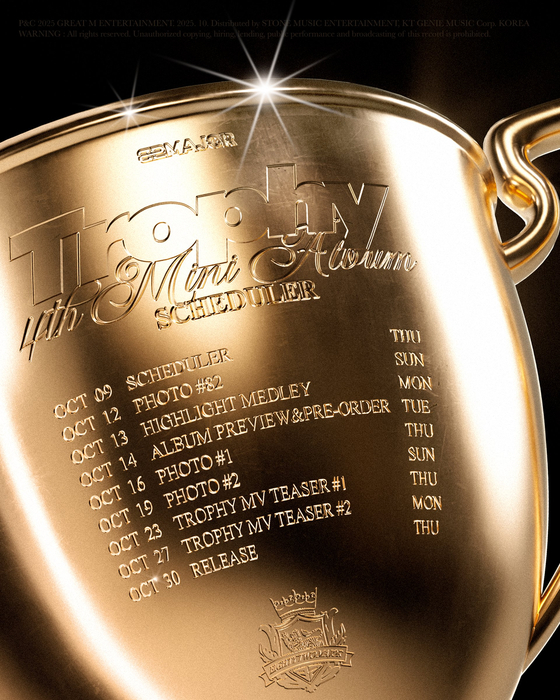 82메이저가트로피를안고컴백카운트다운에나섰다.82메이저(82MAJOR,남성모·박석준·윤예찬·조성일·황성빈·김도균)는지난9일공식SNS를통해미니4집'트로피(Trophy)'스케줄러이미지를게재했다.공개된스케줄러는금빛트로피이미지위에다양한콘텐트일정이담겨있다.82메이저는12일첫번째컨셉트포토를시작으로하이라이트메들리,앨범프리뷰및예약판매오픈,컨셉트포토2종,뮤직비디오티저영상2종을순차적으로공개하며컴백열기를끌어올린다.특히이번앨범은82메이저의확장된음악적역량을확인할수있는앨범으로,벌써부터글로벌팬들의기대가뜨겁다.앞서멤버별개성을담은컬래버레이션프로젝트를통해아티스트의영역을넓혀온만큼이번에는어떤장르의음악과퍼포먼스를선보일지관심이쏠린다.82메이저는개최하는콘서트마다전석매진을기록하며'공연형아이돌'의존재감을드러낸그룹이다.북미25개도시투어에이어'워터밤부산2025','KCONLA2025','TIMA','ATA페스티벌2025'등국내외를종횡무진하며활동영역을확장했다.또한82메이저는지난4일말레이시아쿠알라룸프르에서개최된단독콘서트'82신드롬(82SYNDROME)'을성황리에마무리했다.최근에는MBC'2025추석특집아이돌스타선수권대회'씨름종목에서최종우승을차지하며'아이돌천하장사'타이틀을거머쥐는등다방면에서활약하고있다.82메이저의미니4집'트로피'는30일오후6시각종온라인음원사이트를통해발매된다.김선우엔터뉴스팀기자[email protected]사진=그레이트엠엔터테인먼트Copyright©JTBC.무단전재및재배포금지.
