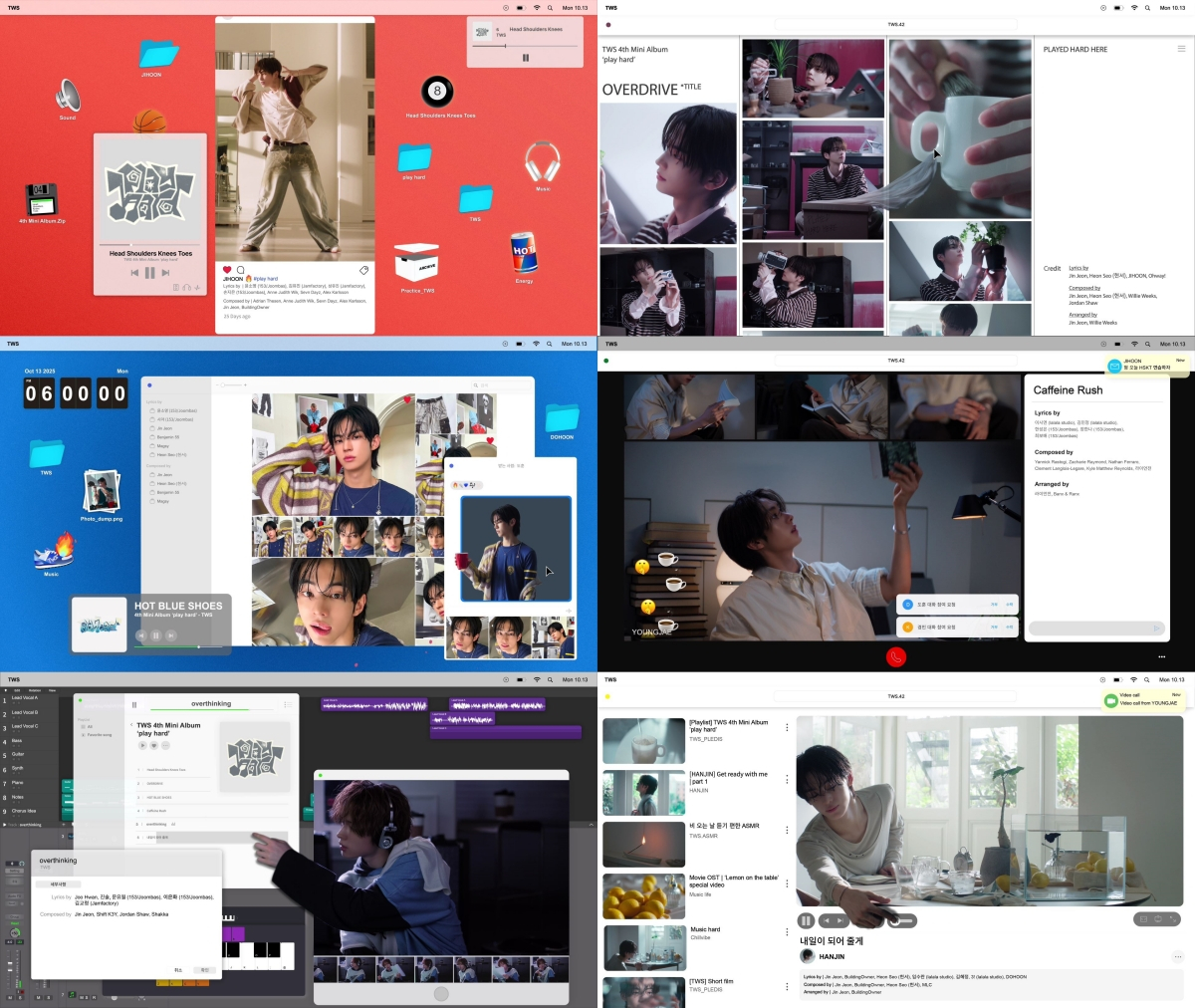 10월13일발매[스타뉴스|문완식기자]"심장이쿵"TWS,미니4집'playhard'하이라이트메들리영상공개그룹TWS(투어스)가신보전곡의음원하이라이트를최초공개해컴백기대감을최고조로끌어올렸다.TWS(신유,도훈,영재,한진,지훈,경민)는8일오후10시하이브레이블즈유튜브채널에미니4집'playhard'의하이라이트메들리영상을게재했다.컴퓨터화면을본뜬영상속여섯멤버는아이콘,사진폴더,음악재생창등다양한인터페이스를자유롭게넘나들며신보의수록곡일부를들려준다.한층박력넘치는청량비트가예고됐다.타이틀곡'OVERDRIVE'는경쾌한멜로디와함께중독성있는기타테마리프가가장먼저귀에꽂힌다.노래제목과동명의기타이펙터'OVERDRIVE'톤을활용해상대방을향해과열된마음을청각적으로도표현했다."심장이쿵","더는못참겠어","원래다이런가요"처럼일상언어를그대로옮겨온듯한가사는사랑에푹빠져어쩔줄모르는감정을직관적으로드러낸다.이를통해TWS는좋아하는것에몰두했을때느끼는다채로운감정을유쾌하게선보일예정이다.수록곡역시TWS의반짝이는열정을다각도로비춘다.지난달22일선공개된'HeadShouldersKneesToes'는목표를향해한계없이내달리겠다는의지를강렬한퍼포먼스에담아냈다.남다른스케일의군무와몸이부서져라춤을추는멤버들의패기가시너지를일으키며'5세대퍼포먼스최강자'라는수식어를입증했다.이외에도TWS만의뜨거운열정을파란신발에빗댄'HOTBLUESHOES',무언가에깊이빠져멍하니헤어나오지못하는상태를감각적으로그린'CaffeineRush',혼자만의생각에서벗어나상대에게한걸음다가가겠다는마음을전하는'overthinking',TWS의세계를완성해준42(팬덤명)를향한멤버들의진심을담은팬송'내일이되어줄게'까지,거침없는청춘의열기를여섯개의트랙에녹였다.이번앨범은멤버들의적극적인참여가눈에띈다.지훈은타이틀곡'OVERDRIVE'의작사에아이디어를보탰고,도훈은팬송'내일이되어줄게'의작사에이름을올렸다.이를통해TWS의생각과진심이신보에고스란히담겼다.TWS의미니4집'playhard'는오는13일오후6시발매된다.이들은내일(10일)과모레(11일)'OVERDRIVE'뮤직비디오티저2편을차례로공개한다.앨범발매당일오후8시에는온·오프라인으로컴백쇼케이스를개최하고42들과만난다.한편TWS는컴백을앞두고대한축구협회공식앰버서더로임명되는겹경사를맞았다.이들은10일서울마포구서울월드컵경기장에서열리는'하나은행초청축구국가대표팀친선경기'브라질전하프타임무대에올라앰버서더로서첫일정을소화한다.문완식기자[email protected]©스타뉴스&starnewskorea.com,무단전재및재배포금지