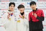 임종언(가운데)과황대헌(왼쪽)이12일(한국시각)캐나다몬트리올에서열린2025∼26국제빙상경기연맹(ISU)쇼트트랙월드투어1차대회남자1500m결승에서메달을딴뒤기념사진을찍고있다.몬트리올/AP연합뉴스한국남자쇼트트랙‘차세대기대주’고등학생임종언(18·노언고)이생애첫성인무대에서금메달을목에걸었다.임종언은12일(한국시각)캐나다퀘벡주몬트리올모리스리처드아레나에서열린2025∼2026국제빙상경기연맹(ISU)쇼트트랙월드투어1차대회남자1500m결승에서2분16초141의기록으로금메달을땄다.본인이가장자신있어한1500m에서당당히1위를차지한것이다.함께결승에진출한황대헌(강원도청)은2분16초593의기록으로은메달을땄다.임종언은지난4월열린국가대표선발전에서쟁쟁한선배들을제치고,남자부전체1위로생애첫태극마크를달았다.성인대표팀으로처음나선월드투어대회에서금메달을따낸임종언은2026밀라노·코르티나담페초겨울올림픽에서의기대감도높였다.한국쇼트트랙여자대표팀(뒷줄오른쪽)이12일(한국시각)여자3000m계주결승에서금메달을딴뒤기념사진을찍고있다.몬트리올/AP연합뉴스한국여자대표팀은3000m계주에서금빛질주에성공했다.최민정,김길리(이상성남시청),심석희(서울시청),노도희(화성시청)가짝을맞춘대표팀은이날여자3000m결승에서4분07초318의기록으로금메달을땄다.2위네덜란드(4분07초350)와는0.032초차다.김길리는여자1000m결승에서1분28초250의기록으로은메달을추가했다.