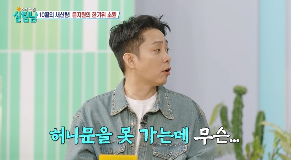 KBS2TV‘살림하는남자들시즌2’캡처KBS2TV‘살림하는남자들시즌2’캡처[뉴스엔박수인기자]재혼을앞둔은지원이신혼여행을못간다고밝혔다.10월4일방송된KBS2TV'살림하는남자들시즌2'에서는10월재혼을앞둔은지원의추석계획이공개됐다.은지원은"이번추석은외롭지않겠다"는백지영의말에"큰행사가있어서추석같지않을것같다.(결혼)준비하느라바쁠것같다"고답했다.추석보름달에빌소원을말해보라는요청에는"허니문을못가는데무슨허니문베이비냐"고했고백지영이'신혼베이비'라고하자"그것보다는결혼식장에부인이오기를.(올지안올지)모른다.당일돼봐야아는거아니냐.부디신부가나타나주길"이라는소원을빌었다.뉴스엔박수인abc159@기사제보및보도자료[email protected]ⓒ뉴스엔.무단전재&재배포금지Copyright©뉴스엔.무단전재및재배포금지.