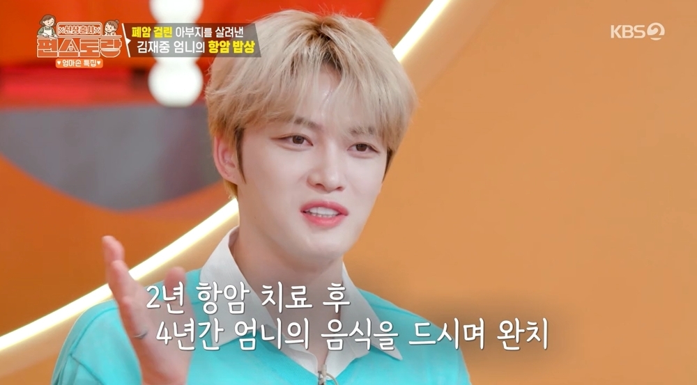 KBS2TV‘신상출시편스토랑’캡처KBS2TV‘신상출시편스토랑’캡처[뉴스엔박수인기자]가수겸배우김재중의어머니가폐암에걸렸던남편을살렸다.9월26일방송된KBS2TV'신상출시편스토랑'은'엄마손특집'2편으로꾸며진가운데,폐암에걸렸던김재중아버지를살린어머니의비밀항암레시피가공개됐다.김재중은아버지가폐암에걸렸던당시를떠올리며"돌아가실수도있다생각할만큼심각한상태였고사실(수술후)항암치료를하면식욕도없어지고뭘먹어도쓰다"고말했다.아버지는"아무리맛있는걸갖다줘도엄마가해주는밥만먹었다.좋다는건다해주니까"라고했고어머니는"폐에좋다는건손수뛰어다니면서다해먹였다.(병원에서)마지막CT촬영을했는데완전정상이라고하더라"며현재는완치판정을받았음을알렸다.김재중역시"(아버지가)2년항암치료하시고4년간어머니의음식을드시고완치된것"이라고덧붙였다.뉴스엔박수인abc159@기사제보및보도자료[email protected]ⓒ뉴스엔.무단전재&재배포금지Copyright©뉴스엔.무단전재및재배포금지.