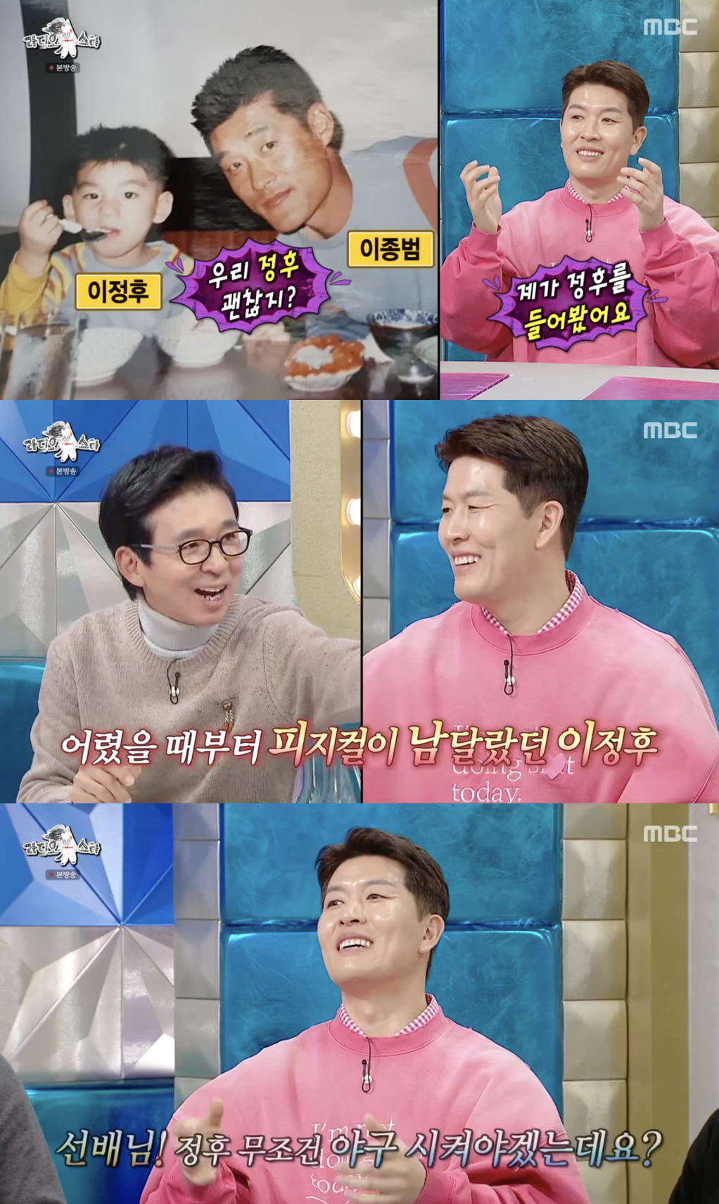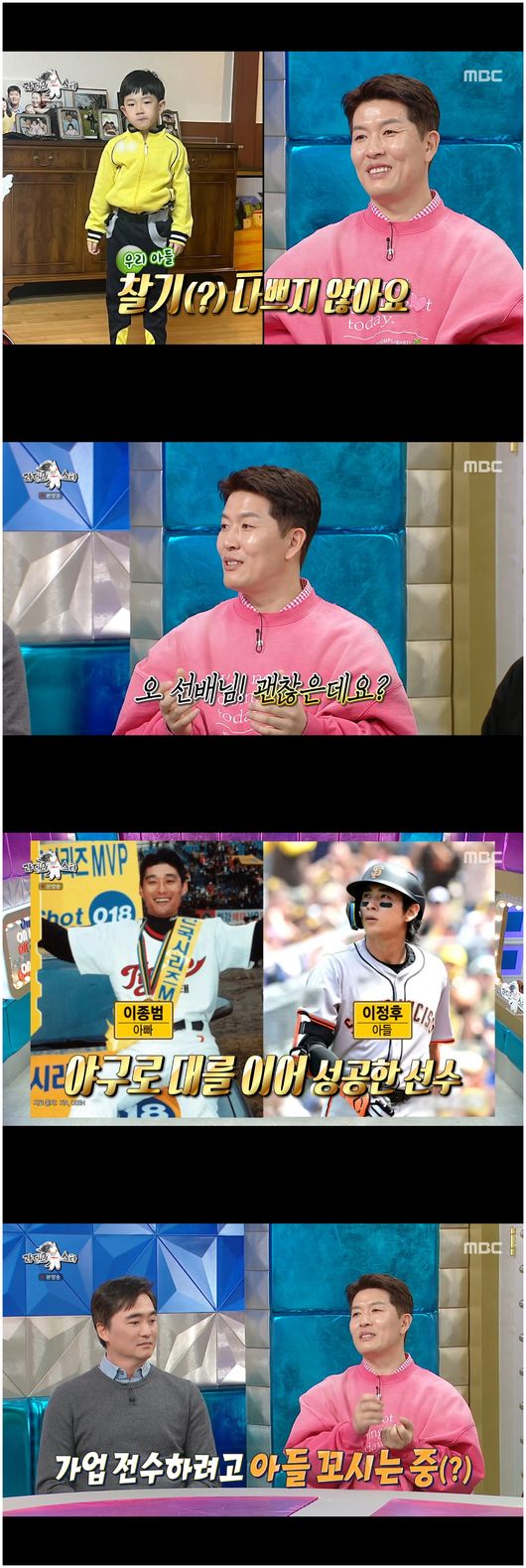 [스타뉴스|정은채기자]/사진='라디오스타'방송화면캡쳐전야구선수김병현이어린시절부터남달랐던이정후의피지컬에대해언급하며제2의이정후를키우고싶은마음을드러냈다.19일방송된MBC'라디오스타'는'비정상파수꾼회담'특집으로꾸며져김석훈,김병현,타일러,타잔이출연했다.이날김병현은자신이"제2의김병현을육성중"이라고밝히며초등학교2학년인막내아들을언급했다.그는"지금까지는축구를했는데내년부터야구를시켜보려고한다.그런데아들은축구를하고싶어한다"고솔직히털어놨다.하지만김병현은아들의잠재력을발견했다며"공던지는걸보면잘던지더라.그래서선물공세를하고있다.내년부터시키려고한다"라고말했다.이과정에서그는야구로대를이은대표적성공사례,이종범의아들이정후를떠올렸다.그는"제2의이정후를만들어보고싶다"고말하며이정후의어린시절을직접목격했던기억도공유했다./사진='라디오스타'방송화면캡쳐김병현은이정후가네다섯살이었을때처음보았다고회상했다."그때종범선배님이저한테'우리정후괜찮지?'라고물어보더라.그래서제가들어봤는데무게도다르고,밸런스가달랐다.선배님한테야구시켜야겠다고했다"고당시를묘사했다.이어"얼마전샌프란시스코에서정후만나서인터뷰했는데참뿌듯하더라"고덧붙이며특급재능이현실로꽃핀순간을전했다.김병현은"우리아들도찰기가나쁘지않다"며아들을야구선수로키우고싶은소망을내비쳤다.정은채기자[email protected]©스타뉴스&starnewskorea.com,무단전재및재배포금지