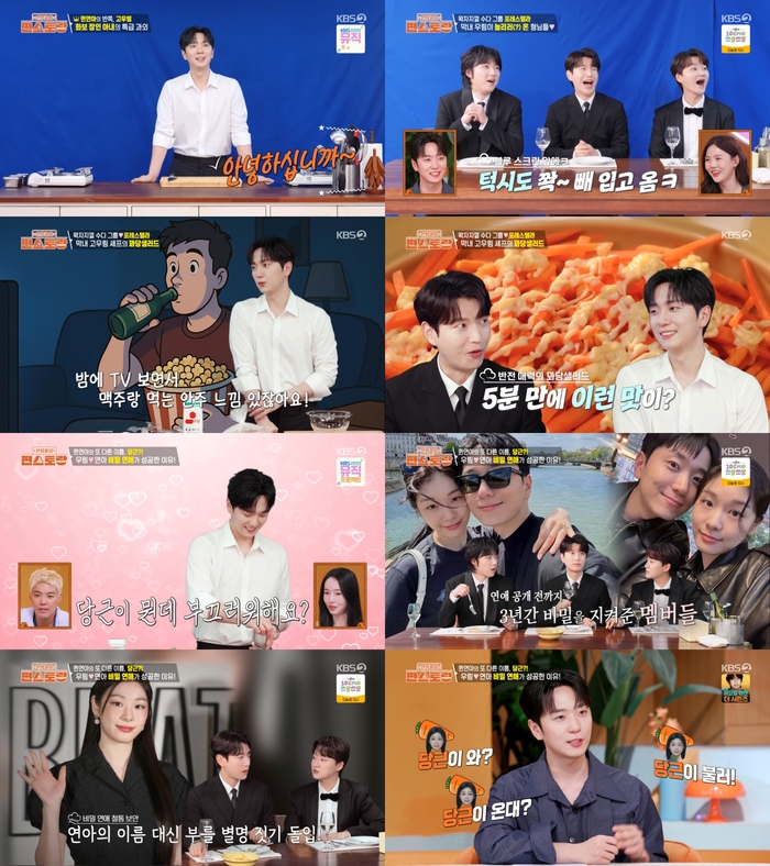 ‘신상출시편스토랑’.사진IKBS2‘신상출시편스토랑’방송캡처그룹포레스텔라고우림이아내김연아의애칭이‘당근’이된일화를전했다.14일방송된KBS2‘신상출시편스토랑’에서는고우림의일상이그려졌다.이날고우림은포레스텔라멤버들을초대해특별한음식을대접했다.강형호가“여기셰프가유명한사람이라던데”라고하자고우림은“아내가좀유명하다.나는그냥그렇다”라고너스레를떨었다.고우림은포레스텔라결성8주년을맞아가족같은멤버들에게감사한마음을전하고자음식을대접하게됐다고밝혔다.고우림이준비한애피타이저는‘꽈당샐러드’였다.‘꽈당샐러드’는양념이된감자과자와채를썬당근을활용한샐러드라고.강형호는“본인이먹어본거냐.조합이색달라서기대반걱정반이다”라고걱정을표했다.고우림은감자과자위에당근을얹은후마요네즈를뿌려‘꽈당샐러드’를완성했다.5분도안돼완성된‘꽈당샐러드’에배두훈은“나는이런식으로조리한건먹고싶지않다”고시식을거부했다.고우림의설득에‘꽈당샐러드’를맛본포레스텔라멤버들은“맛이되게괜찮다”,“맛있다”고호평을쏟아냈다.이어“나자신한테진기분이다”라고해웃음을자아냈다.조민규는“이건러브스토리를담은음식일수있겠다.하필첫번째음식부터당근이왜나오나했다”고해궁금증을자아냈다.조민규는“고우림이랑김연아가연애를할때우리가3년동안비밀을지켰다.그런데우리도김연아에대해서이야기는해야할거아니냐.우리가4명만있는게아니라스태프들도같이있으니까뭔가명칭을하나만들어야해서아무도김연아를연상하지못할단어를고민했다”고설명했다.그렇게결정된김연아의별명이‘당근’이었다고.강형호는“나는지금도휴대폰에‘당근’이라고저장돼있다”고밝혔다.조민규는“우리가한동안실제로도‘당근’이라고불렀다.그걸그렇게오래사용할줄몰랐다”고거들었다.[이세빈스타투데이객원기자]Copyright©스타투데이.무단전재,재배포및AI학습이용금지