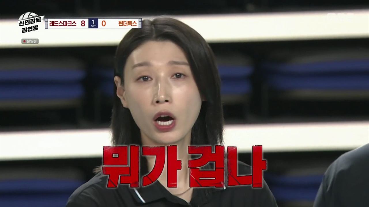 [리뷰]MBC<신인감독김연경>[이준목기자]▲신인감독김연경김연경ⓒMBC김연경이이끄는필승원더독스가팀생존을좌우할중요한고비에직면했다.프로강팀을상대로심지어주전3명을잃은채로경기에나서야하는절체절명의상황에서'김연경매직'은이뤄질수있을까.11월9일방송된MBC<신인감독김연경>에서는프로강호안양정관장레드스파크스에도전장을던진원더독스의이야기가그려졌다.앞서원더독스는실업강호수원특례시청을상대로다섯번째경기에나섰다.1세트를25-19로승리하며기선을제압한원더독스는,2세트에서도수원의블로킹사이를공략하라는김연경의전략이적중하며20-13으로앞서나갔다.하지만원더독스는서브순서를착각하는어이없는실수로8초서브룰을위반하며허무하게실점을허용했다.여기에구솔의안테나터치와표승주의서브범실까지속출하며수원에추격을허용했다.긴장한원더독스선수들은벤치의눈치를살폈지만,아직점수차가있었던탓에김연경은"웃을수있는여유가있어서좋다"며일단불호령대신가벼운농담으로넘어갔다.인쿠시가스파이크공격에이어단독블로킹까지성공시키며다시흐름을원더독스쪽으로반전시켰다.마음이급해진수원의오버네트실책까지나오면서며2세트도25-18원더독스의승리로마무리했다.벼랑끝에몰린수원은3세트초반서브득점과상대블로커를이용한쳐내기(터치아웃)득점등으로공격루트에변주를주면서반격에나섰다.원더독스도자신감을얻은인쿠시를적극활용한레프트공격이적중하면서일진일퇴의공방을이어갔다.계속된레프트위주의플레이로인쿠시의체력이저하될조짐을보이자,김연경은이진과윤영인을투입하며중앙공격을주문했다.하지만이진이투입되자마자불안한서브와수비위치실수가속출하며수원에연속실점을내주고분위기가크게흔들렸다.표정이굳어진김연경은작전타임을불러이진의플레이를강하게질책했다.여전히점수차는여유가있었지만'결과보다과정'을강조한김연경은,당장의플레이가성공하더라도선수들이훈련때약속한플레이가나오지않으면반드시강하게지적했다.이진은스스로답답한마음에눈시울을붉혔다."이러려고온게아닌데,더잘하려고온건데이게맞나싶었다"면서"그래도터닝포인트가됐다.그렇게안혼나게해야겠다.머릿속에박혔다"며분발을다짐했다.마음을다잡은이진은상대타이밍을뺏는토스로수원의수비를따돌리고윤영인의득점을도왔다.기세를되찾은원더독스는매치포인트에서승부를결정짓는문명화의쐐기득점으로3세트를25-16으로압도하고세트스코어3-0셧아웃완승을거뒀다.이로써원더독스는창단첫연승을거두며3승2패로이제1승만더하면팀생존(과반승)이라는목표달성을눈앞에두게됐다.김연경은"트라이아웃부터과정이쉽지않았는데,선수들과함께계속저도성장하는것같다.선수들한테너무고맙다"는소감을전했다.주전멤버3명빼고프로강팀만난원더독스▲신인감독김연경김연경ⓒMBC원더독스의6차전상대는프로팀인안양정관장레드스파크스였다.김연경의선수시절마지막시즌챔피언결정전에서맞붙었던숙적이자,현재원더독스의주장표승주의친정팀이기도했다.김연경은"지금까지상대했던팀들보다가장강한팀이다.그래서조금흥분된다.우리선수들이얼마나성장했고좋은모습을보여줄수있을지기대가많이된다"며승부사의본능을드러냈다.빅매치를앞두고원더독스에뜻하지않은악재가발생했다.수원특례시청소속인김나희,백채림,윤영인이해외경기출전일정으로인하여잠시자리를비우게된것.프로강팀을상대하면서졸지에주전멤버를3명이나빼고경기에나서야하는더욱어려운상황이됐다.표승주는레드스파크스에서의마지막시즌을마치고FA미계약사태가발발하며강제은퇴를해야했던아픔을겪었다.경기를앞두고표승주는김연경과의식사자리에서갑작스러운은퇴과정에대한솔직한심경을밝혔다."사실15년의배구세월을관둔다는게쉽지않았다.너무슬펐고눈물이났다.그렇지만은퇴는내선택이었다.원더독스라는좋은기회로인하여다시코트에서게된다면,그때는정말잘마무리하고싶다."고희진레드스파크스감독은"원더독스에맞게끔선발은무조건퓨처스(2군)멤버들로준비했다.하지만경기상황에따라주전급멤버를투입할수도있다"고밝혔다.고감독은"여유있게다리도꼬아가면서지켜보겠다.3대0으로우리가이길것"이라며도발했다.하지만김연경은"방심?오히려잘됐다.만일우리에게지면어떡하려고그러나.한번골치아프게해드려야겠다"고웃으며여유롭게받아쳤다.한편으로"오늘은느낌이좀색달랐다.3개월전만해도이구장에서경기를했는데,많은관중들의함성속에서뛰던순간이떠오르기도했다"며감회를드러냈다.원더독스는표승주-문명화-한송희-구솔-인쿠시-김현정-구혜인으로선발라인업을꾸렸다.1세트초반레드스파크스는프로준우승팀의클래스를과시하며원더독스를강하게몰아붙였다.U-21국가대표이기도한신은지-곽선옥을앞세운레드스파크스의매서운공세가이어졌다,설상가상표승주를활용한원더독스의공격은플레이스타일을너무잘아는옛동료들에게번번이읽히며저지당했다.원더독스는한점도뽑지못하고8-0까지일방적으로끌려갔다.작전타임에서김연경은"생각없이하냐지금.쉬운거부터