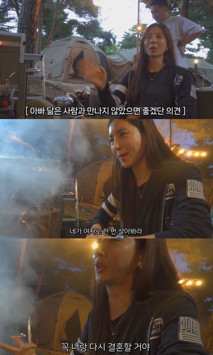 [서울=뉴시스]한채아.(사진=유튜브채널'한채아'캡처)[email protected]*재판매및DB금지[서울=뉴시스]전재경기자=배우한채아가솔직한입담을드러냈다.최근유튜브채널'한채아'에는'불멍하러왔다가텐트보다내가먼저타버림'이라는제목의영상이공개됐다.영상속한채아는지인들과함께캠핑을즐기며결혼생활과가족에대한이야기를나눴다.한채아는"딸들은자기아빠랑비슷한사람을만나게된다고하는데,나는딸이내남편닮은사람과는만나지않았으면좋겠다"고말해웃음을자아냈다.그는"딸에게'너저사람이랑살수있어?''엄마가얼마나힘들었는지알아?'라고할것같다"고덧붙였다.그러면서도한채아는"나는다시태어나도남편과결혼할거다"라고말했다."근데내가남자로태어나야된다.남편이여자다"라며"죽어봐라,네가여자로한번살아봐라.내가남편이돼서꼭너랑다시결혼할거야"라고말해웃음을안겼다.한채아는2018년차범근전축구국가대표감독의아들차세찌와결혼해슬하에딸을두고있다.☞공감언론뉴시스[email protected]©뉴시스.무단전재및재배포금지.